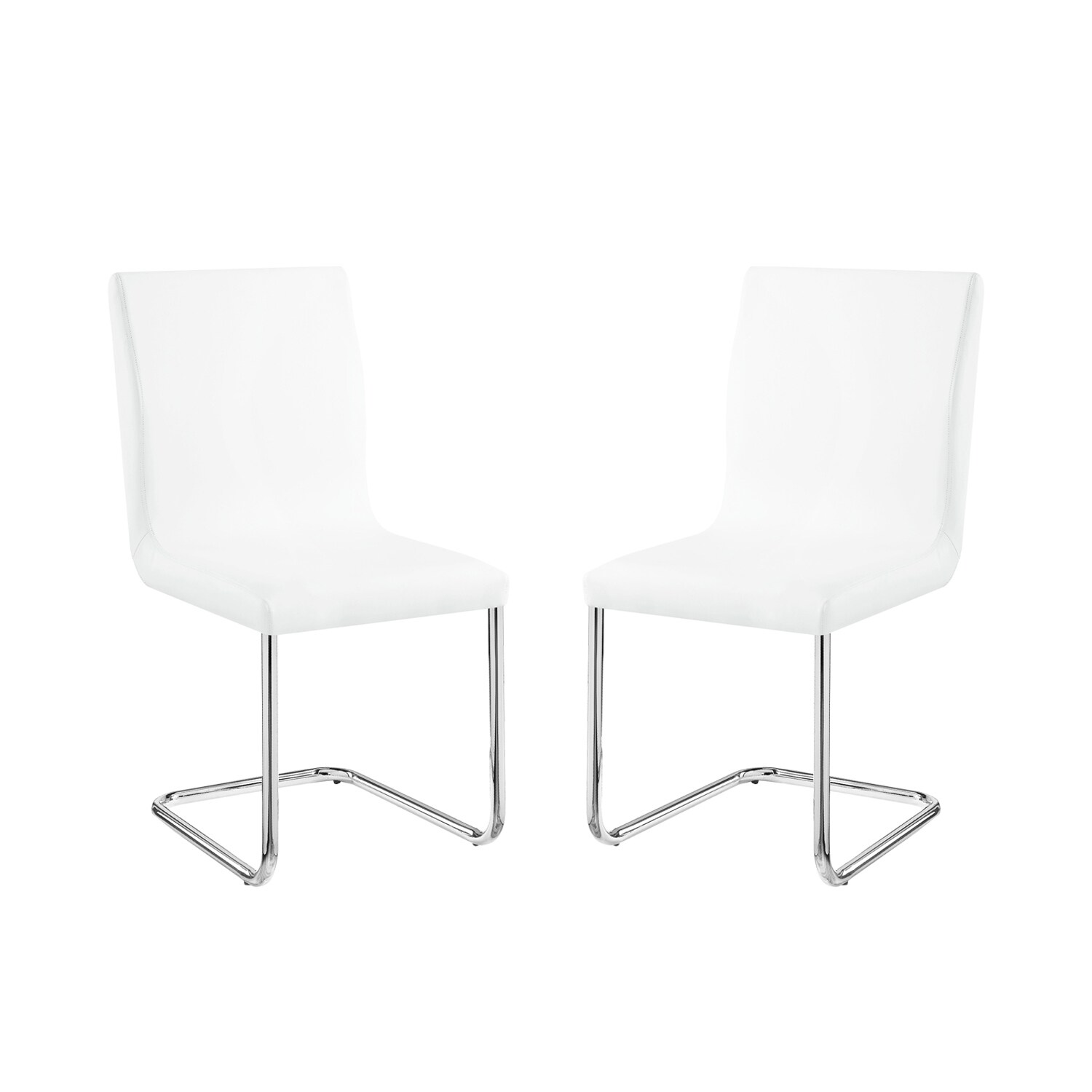 Set of 2 PU Padded Side Chair in White and Chrome Finish