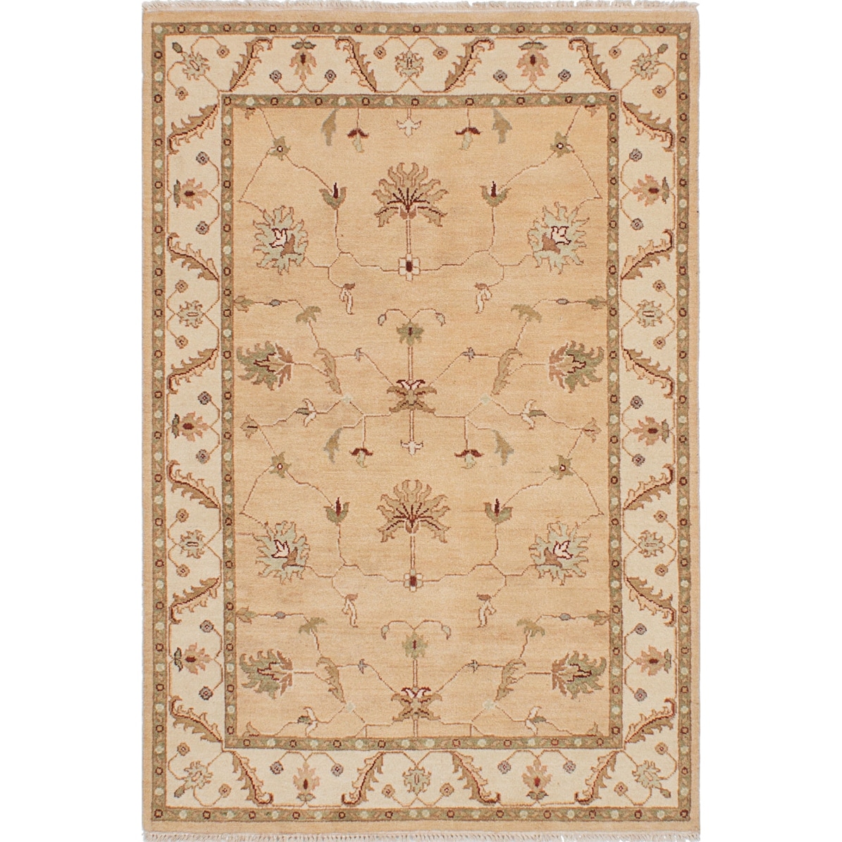 ECARPETGALLERY Hand-knotted Chobi Twisted Ivory Wool Rug - 4'1" x 6'1"
