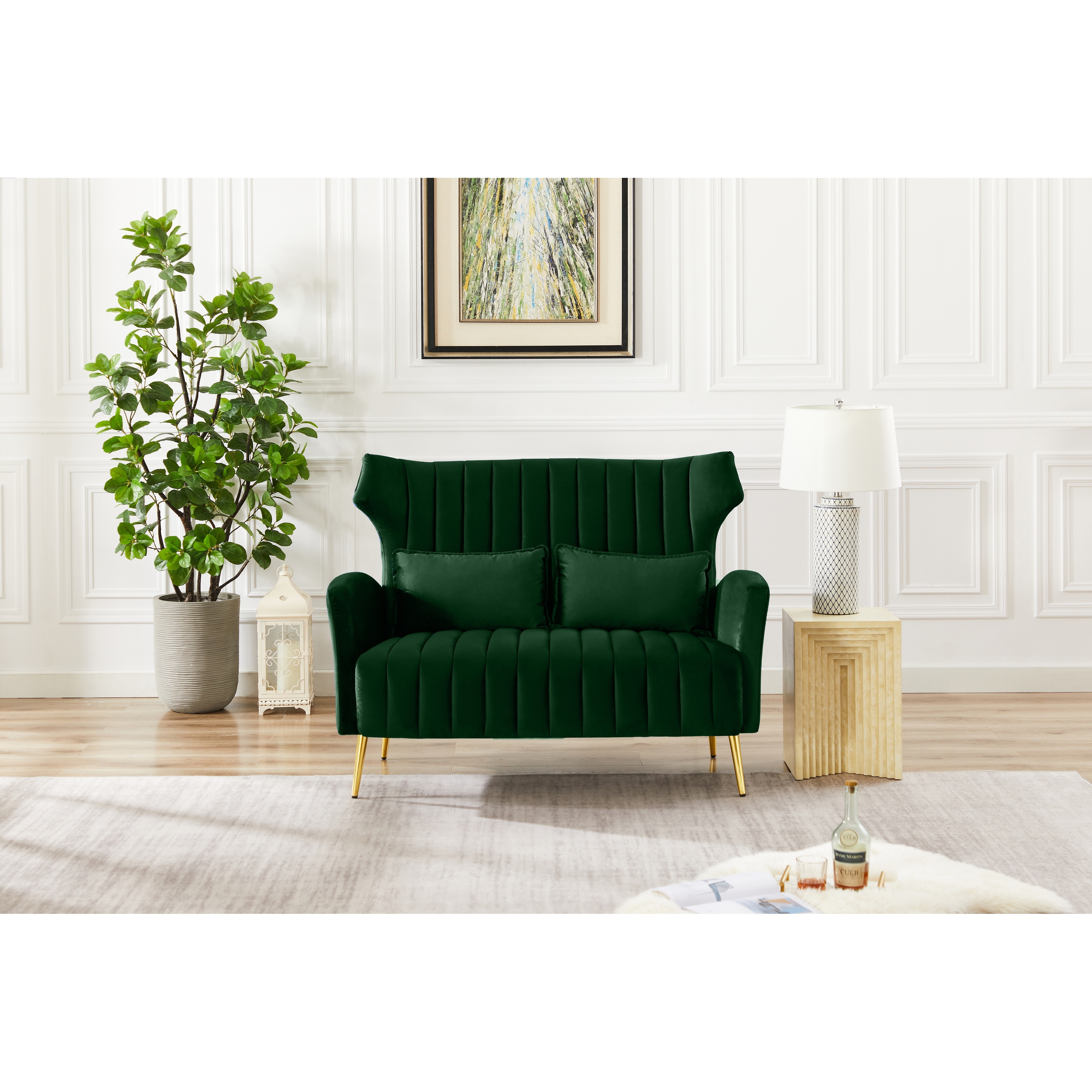 Tufted Velvet Wingback Loveseat Sofa Upholstered Couch.