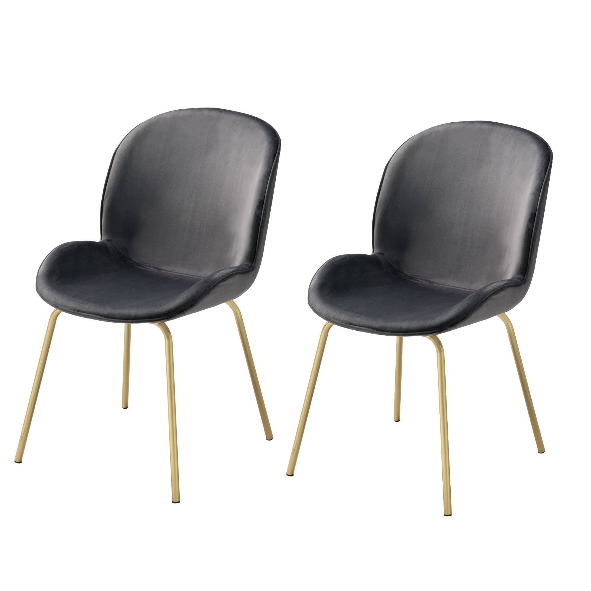 Side Chair with Padded Seat and Metal Legs, Set of 2, Gray and Gold