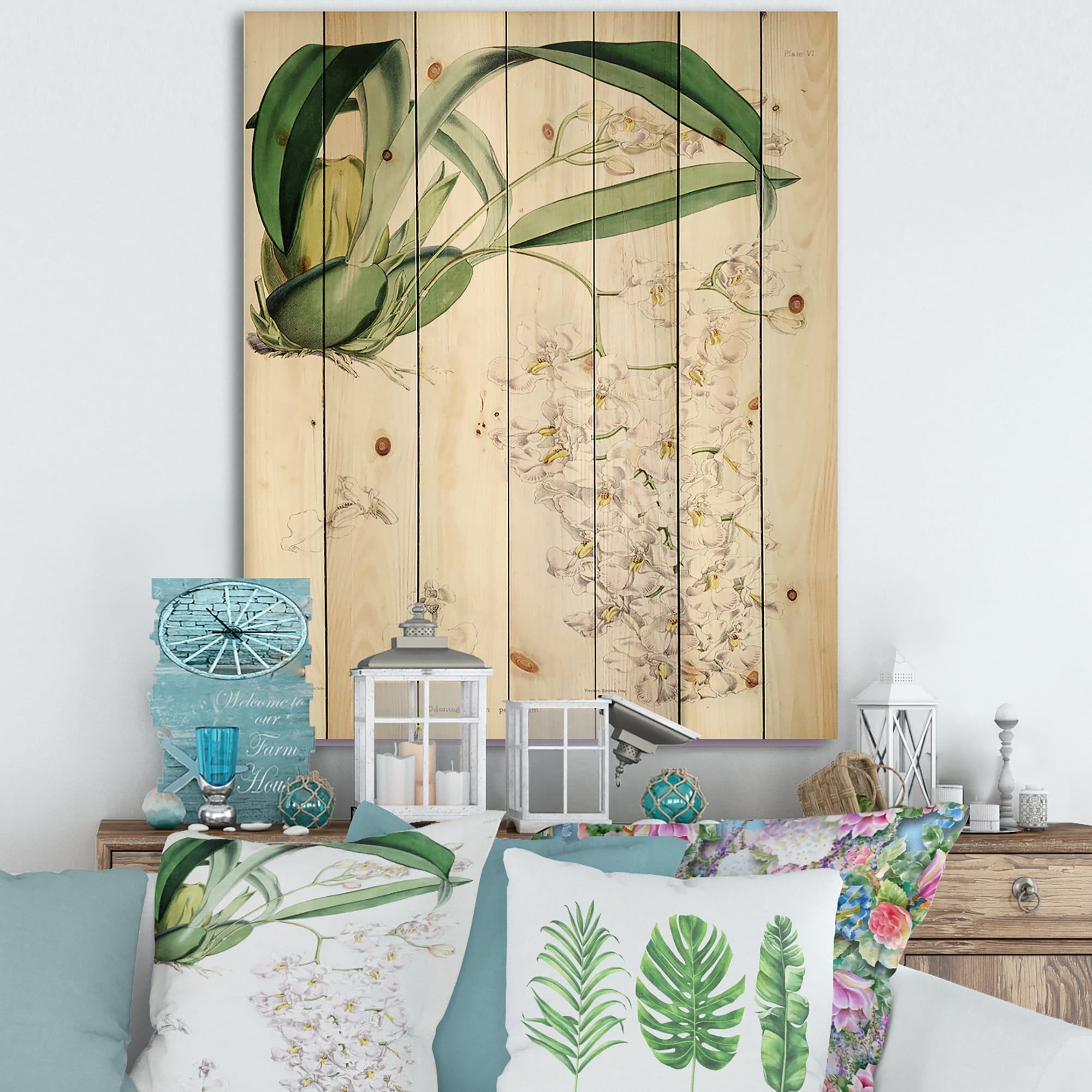 Designart 'Vintage White Orchid II' Traditional Print on Natural Pine Wood