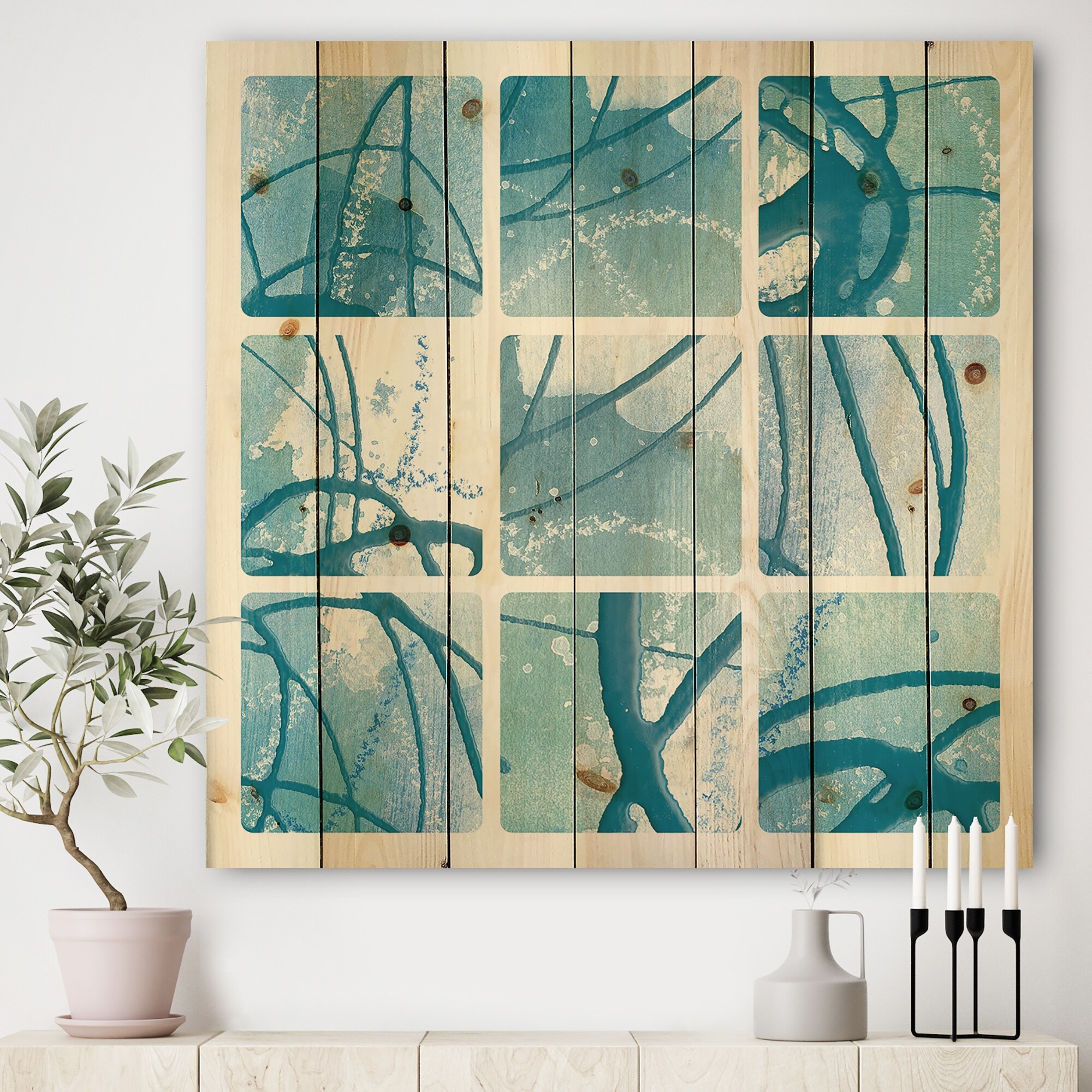 Designart 'Underwater collage' Modern & Transitional Print on Natural Pine Wood - Blue