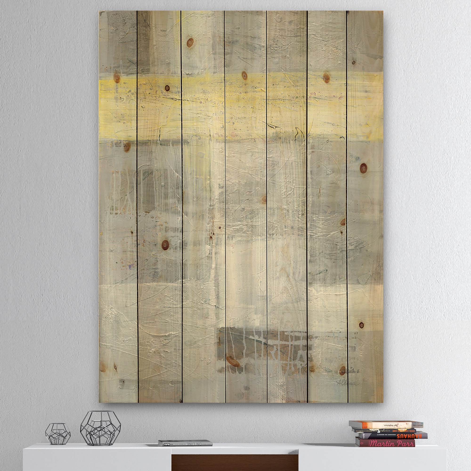Designart 'Minimal Geometric Compostions of Elementary Forms XIII' Modern Print on Natural Pine Wood
