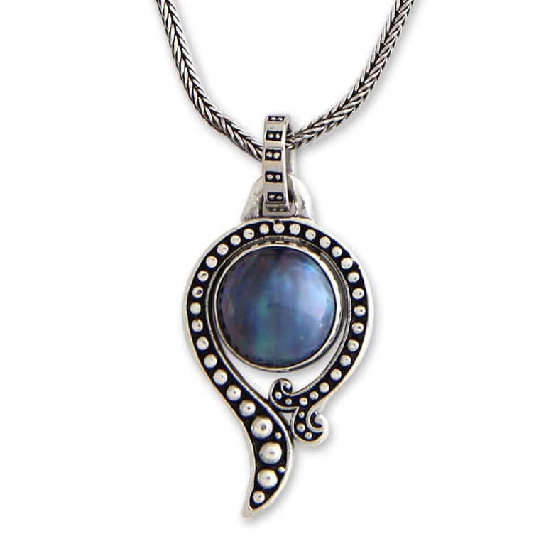 NOVICA Handmade Sterling Silver Jaipur Magic Moon Pearl Snake Style Pendant Necklace (8 mm) (India) - White