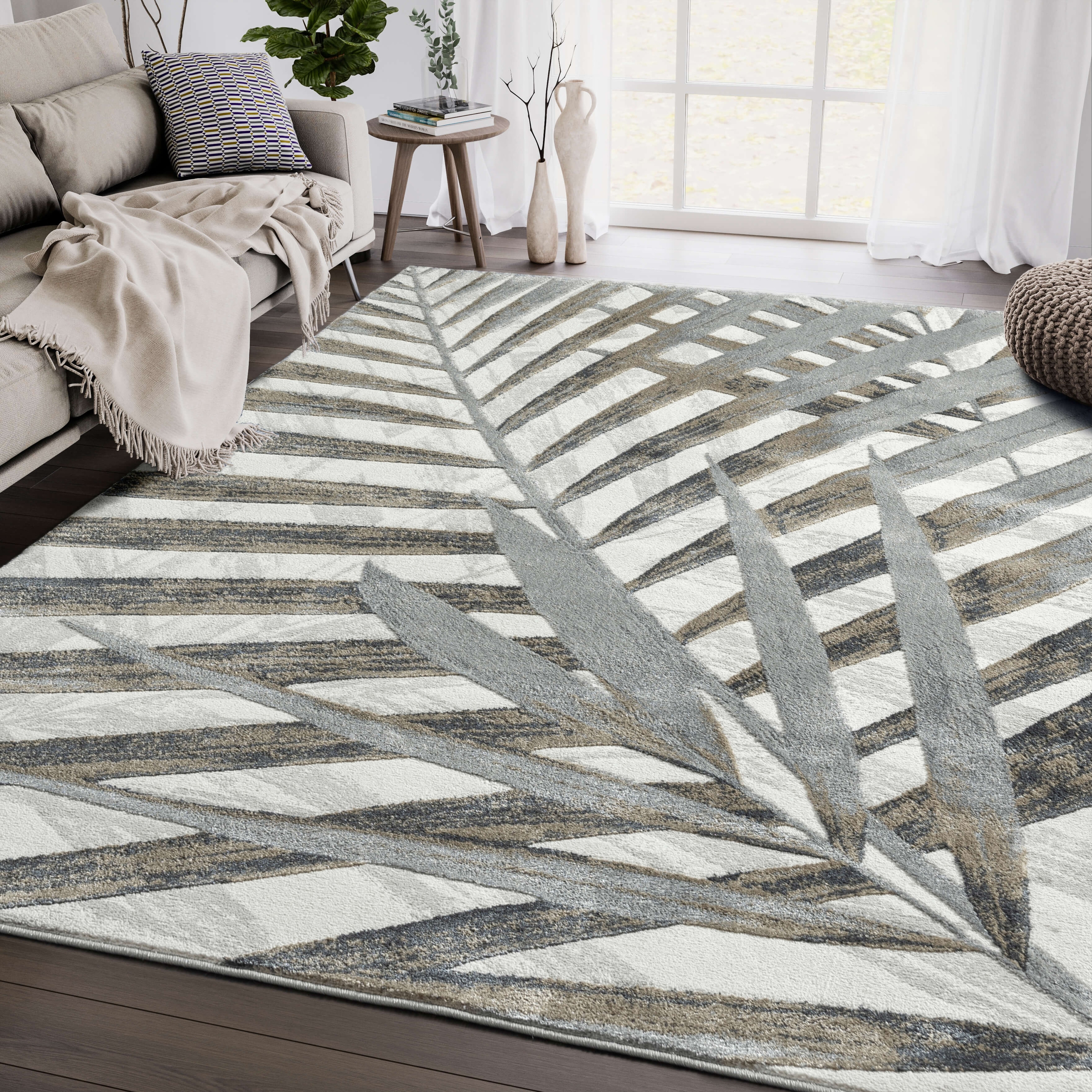 Abani Nova NOV110B Grey and Brown Floral Palm Area Rug