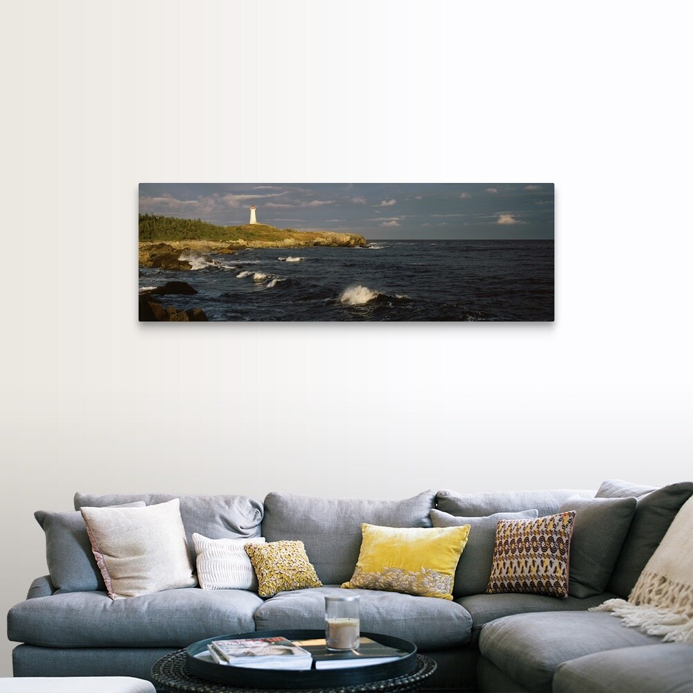 "Canada, Nova Scotia, Cape Breton Island, Louisburg lighthouse during sunset" Canvas Wall Art