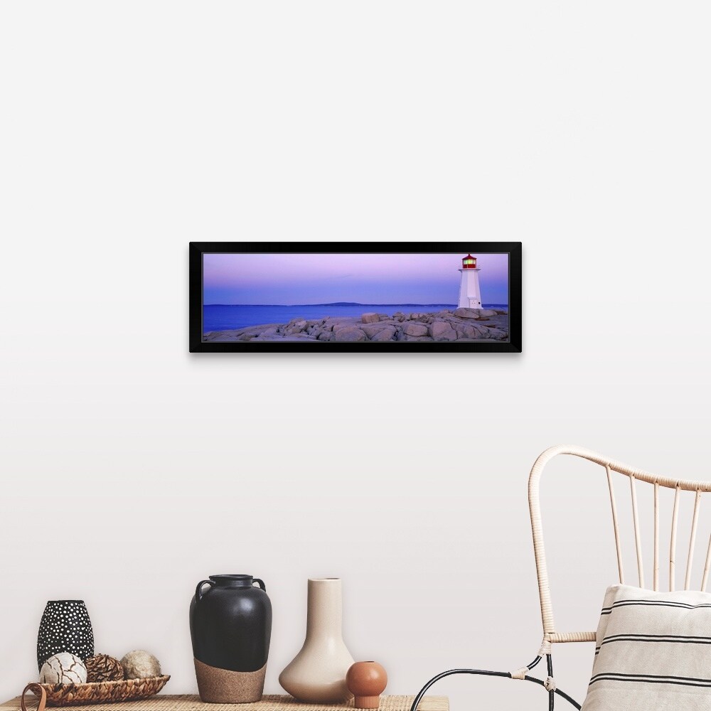 "Lighthouse at the coast, Peggy's Point Lighthouse, Peggy's Cove, Nova Scotia," Black Framed Print