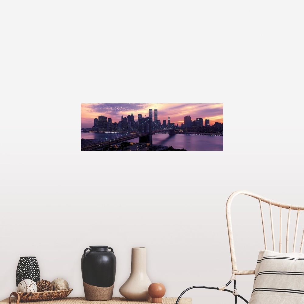 Easy Art Prints Panoramic Image 'Brooklyn Bridge, East River at sunrise, New York City,NY skyline post 9/11' Canvas Art