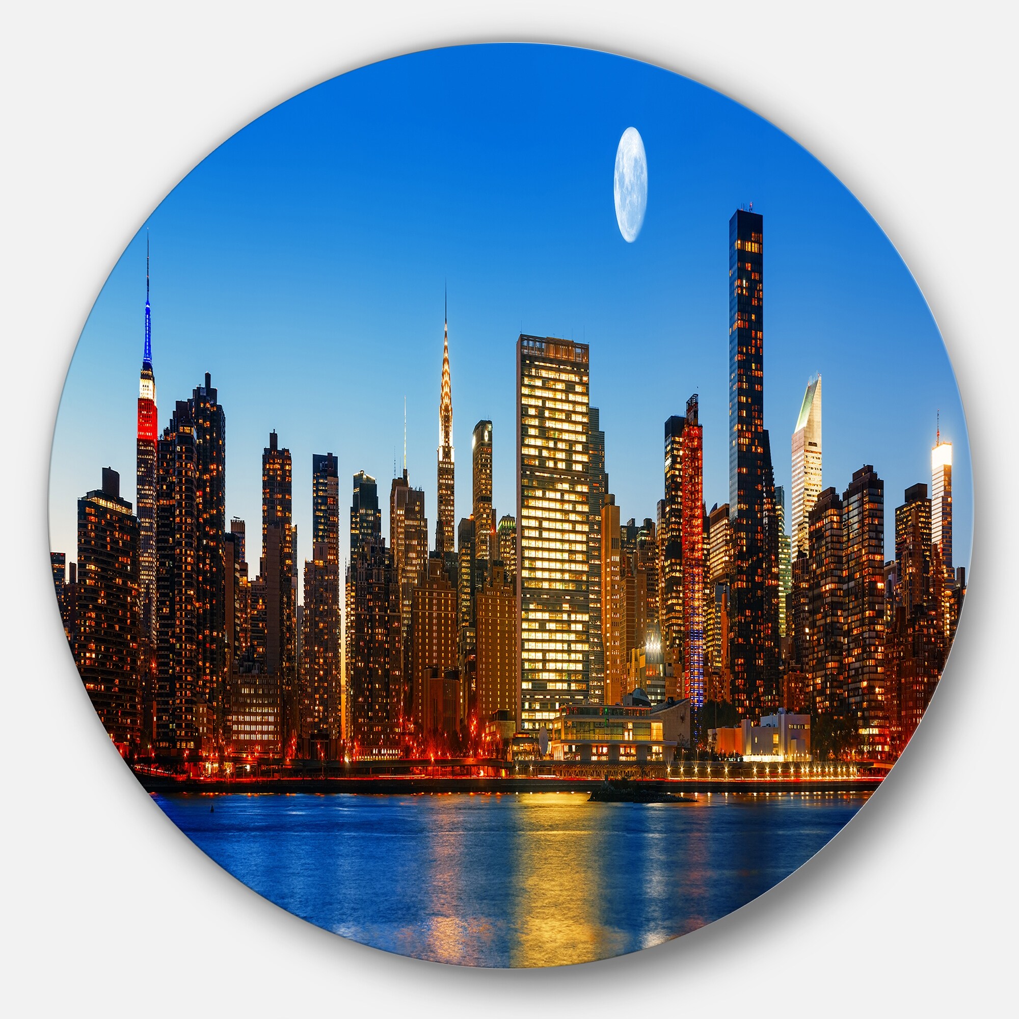 Designart 'Late Evening NYC Skyline Panorama' Cityscape Photo Large Disc Metal Wall art