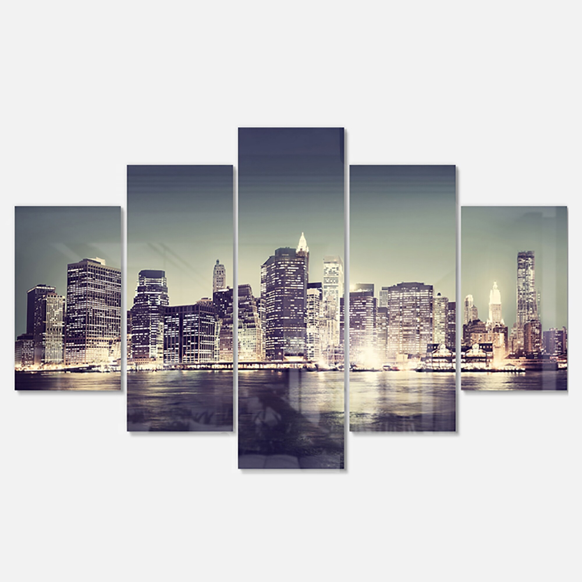 Designart 'Black and White NYC Night Panorama' Extra Large Cityscape Glossy Metal Wall Art