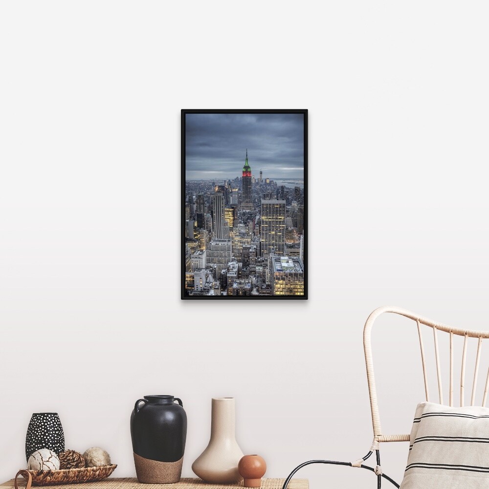 "Christmas over Manhattan, NYC" Black Float Frame Canvas Art