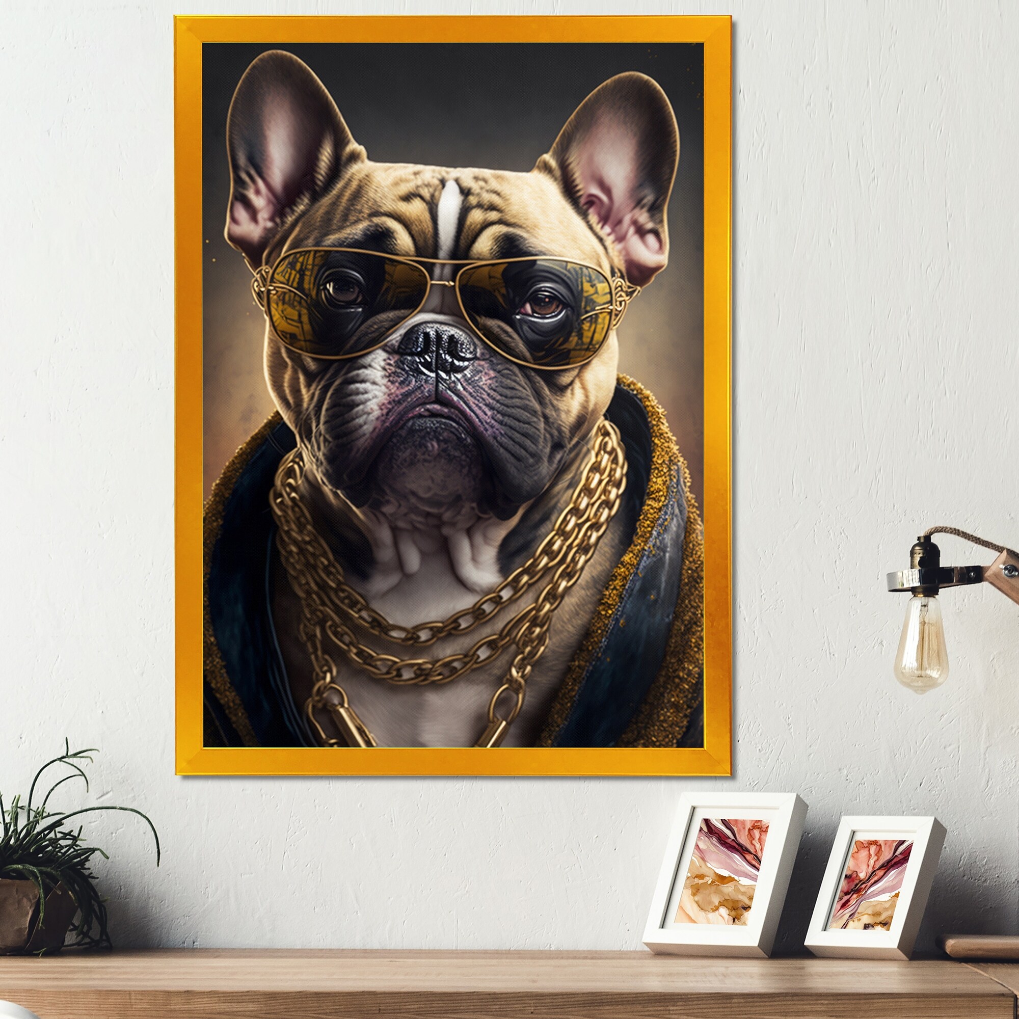 Designart "Frenchie Gangster in NYC III" Animals Framed Art Print