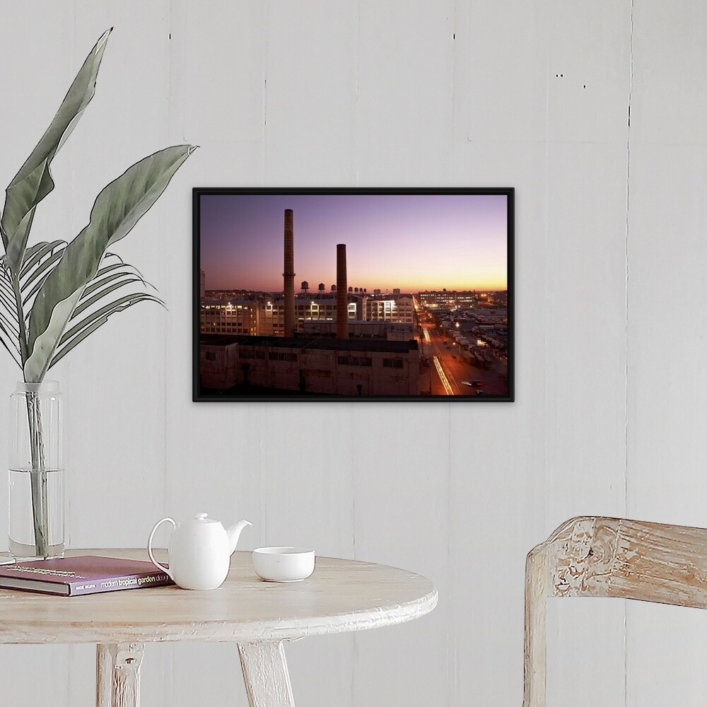 "Brooklyn Water Towers, NYC" Black Float Frame Canvas Art