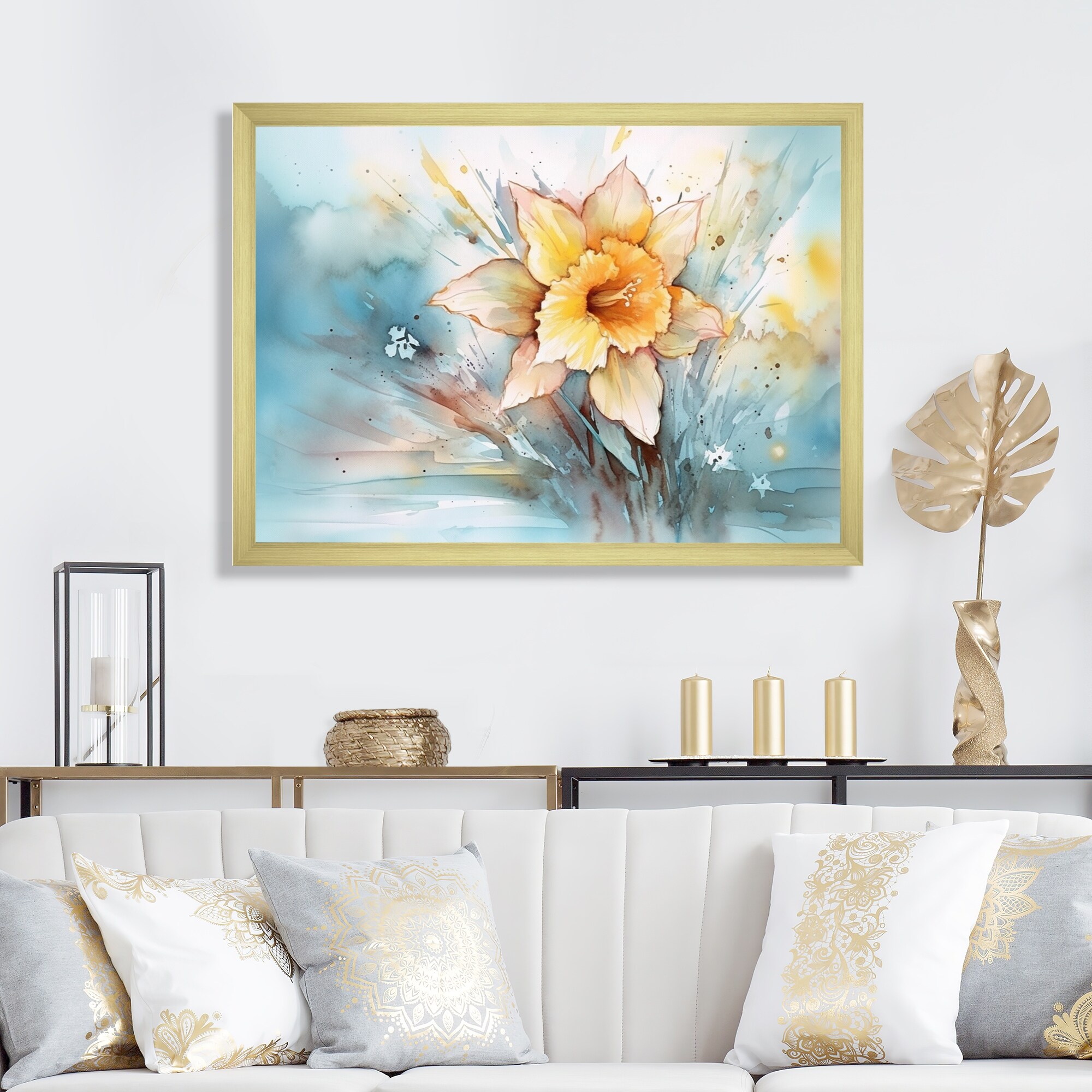Designart "Golden Daffodils Elegance Iv" Floral Daffodil Framed Canvas Wall Art