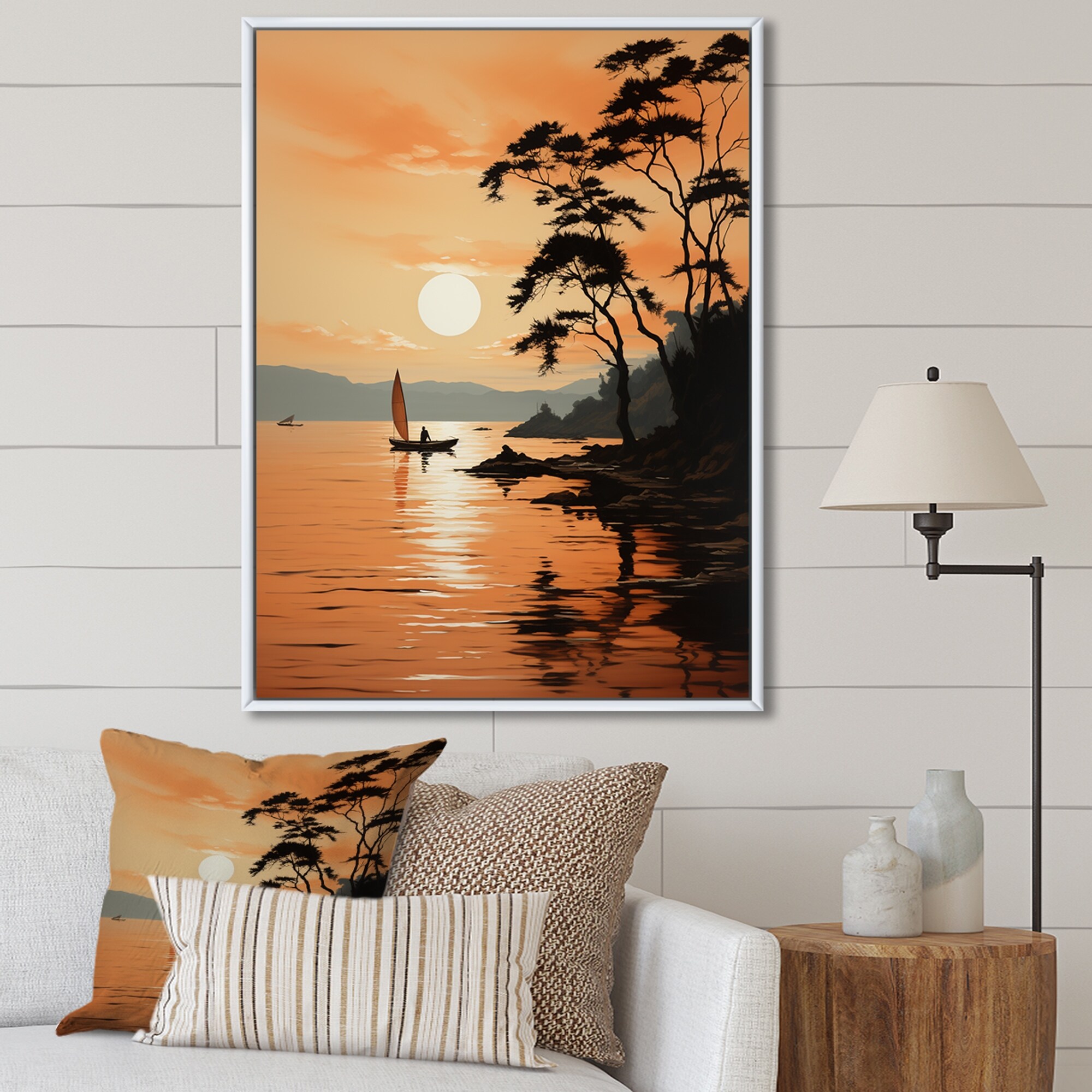 Designart "Golden Sunrise Silhouetted I" Sunrisesunset Framed Wall Art Living Room