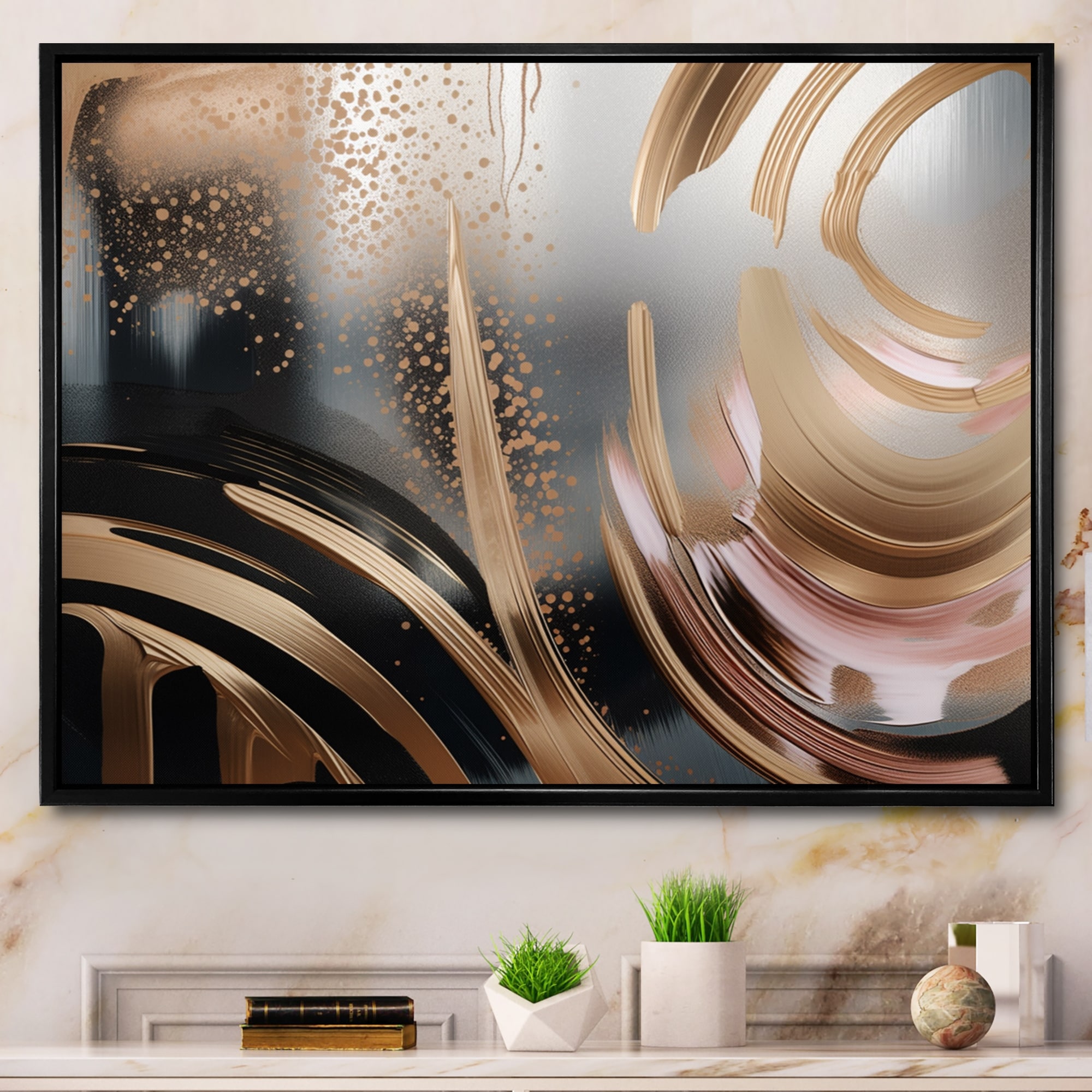 Designart "Gold And Pink Vibrant Swirls Iii" Abstract Marble Framed Wall Art Prints