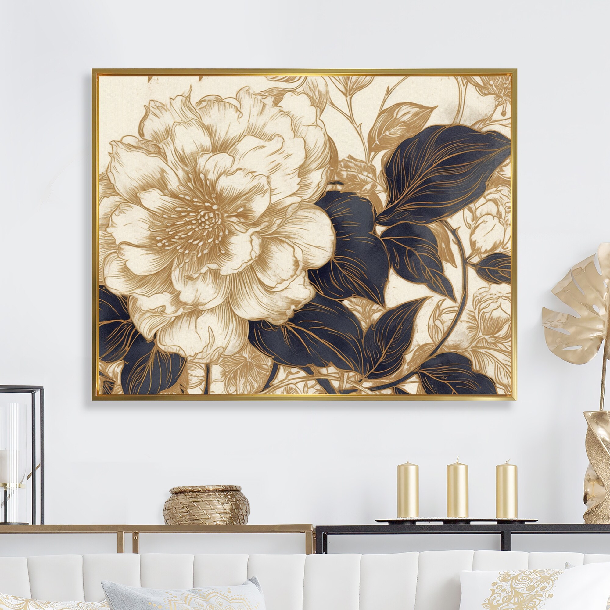 Designart "Gold Elegant Modern Sofa Iii" Modern Waves Framed Wall Art Prints