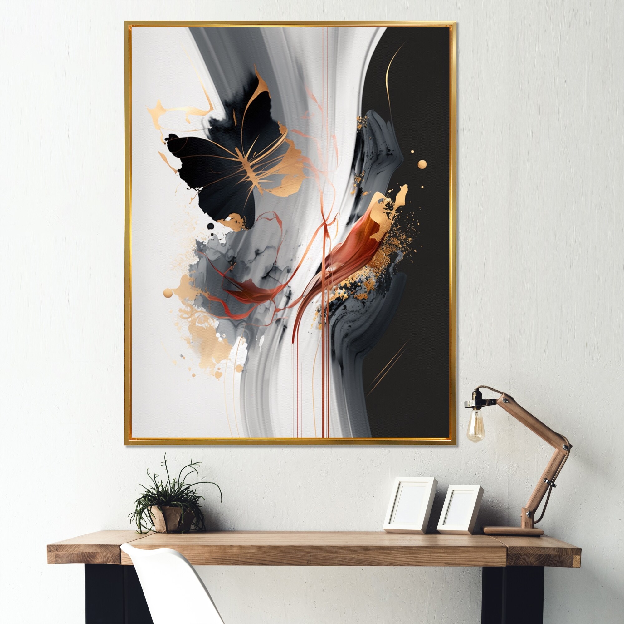 Designart "Modern Butterfly Painting" Abstract Framed Wall Art Prints