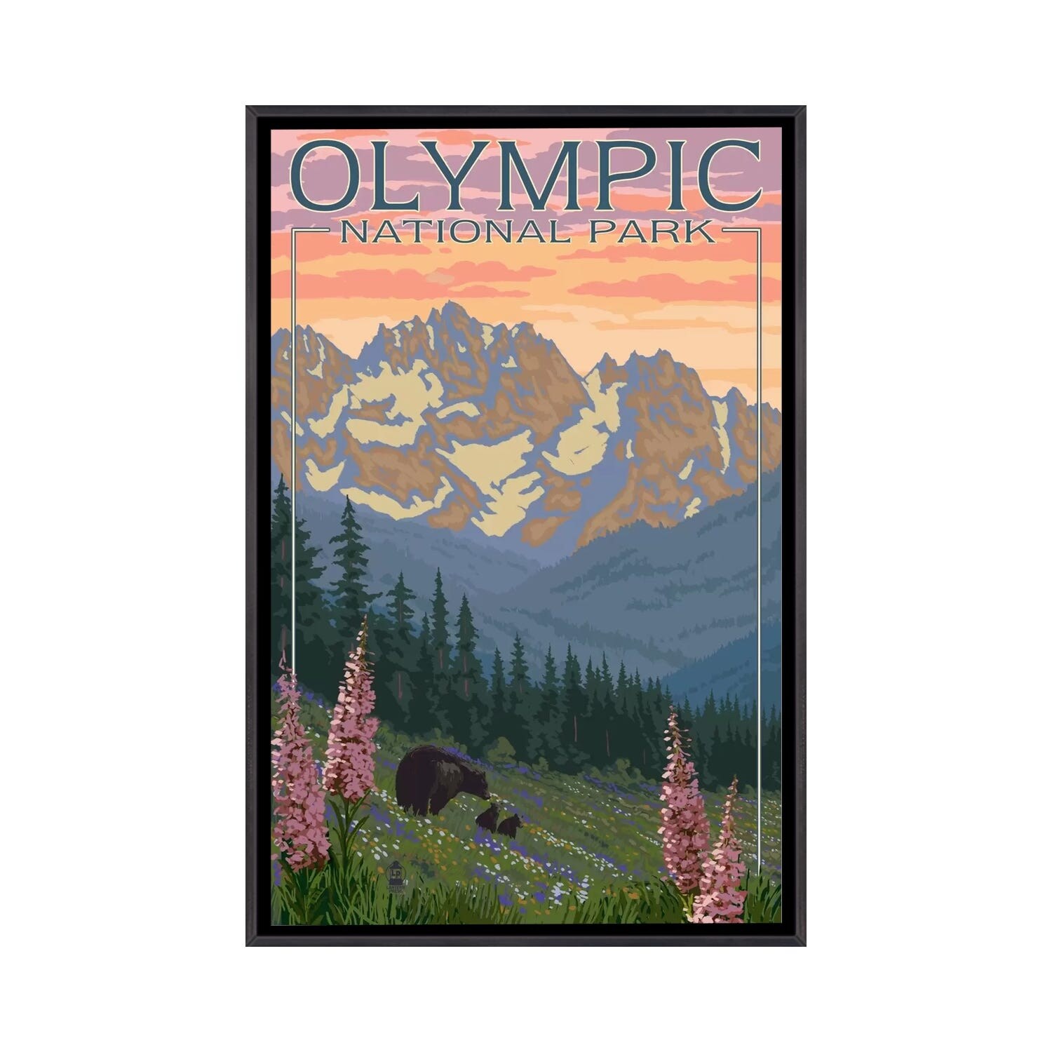 iCanvas "Olympic National Park (Black Bear Family)" by Lantern Press Framed