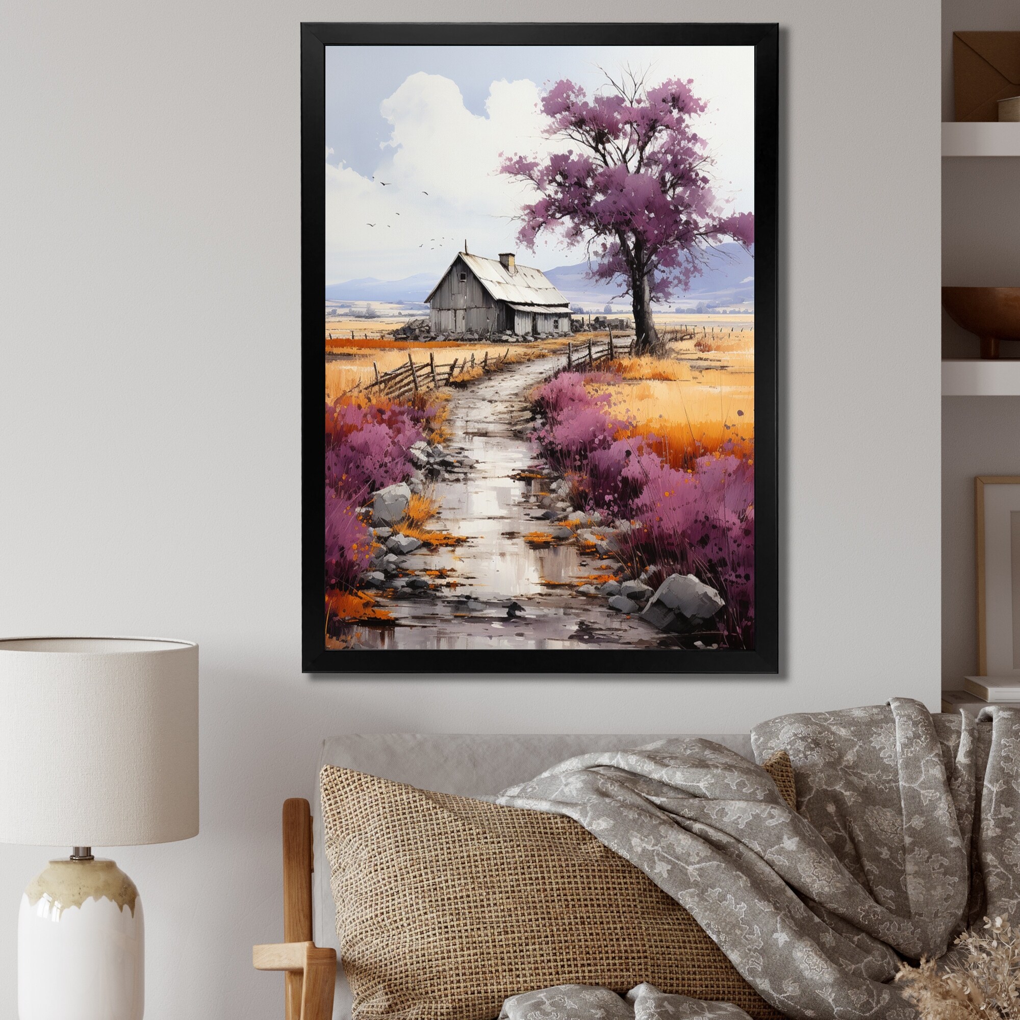 Designart "Purple Barn Country Legacy" Barns Framed Canvas Print