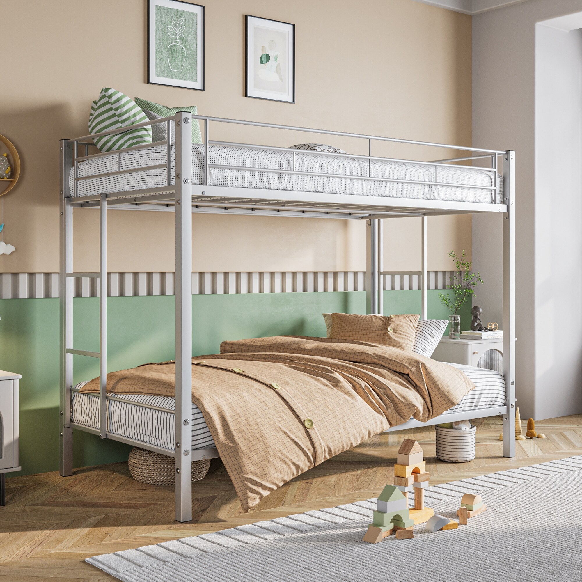 Metal Bunk Bed Twin Over Twin with Shelf and Slatted Support