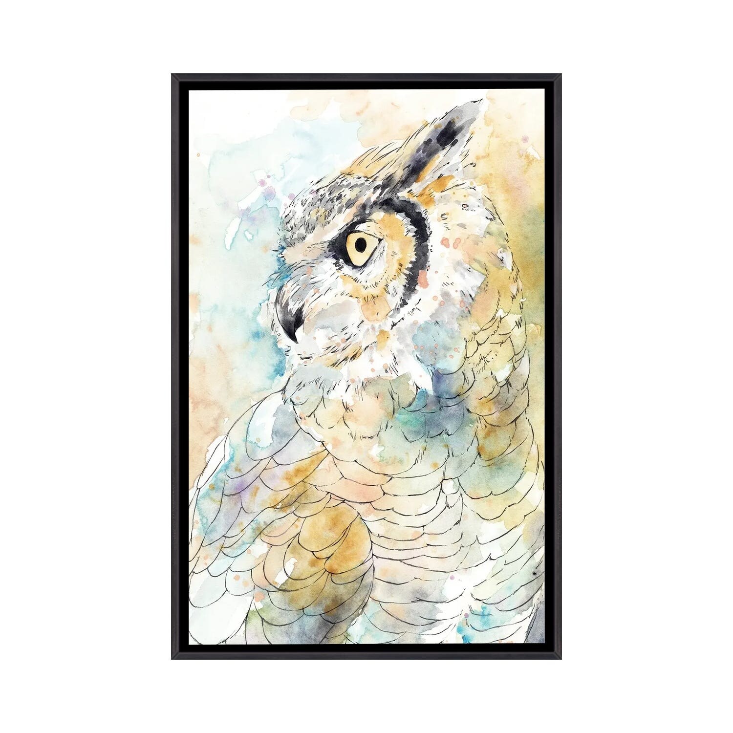iCanvas "Owl With Watercolor" by Yubis Guzman Framed Canvas Print