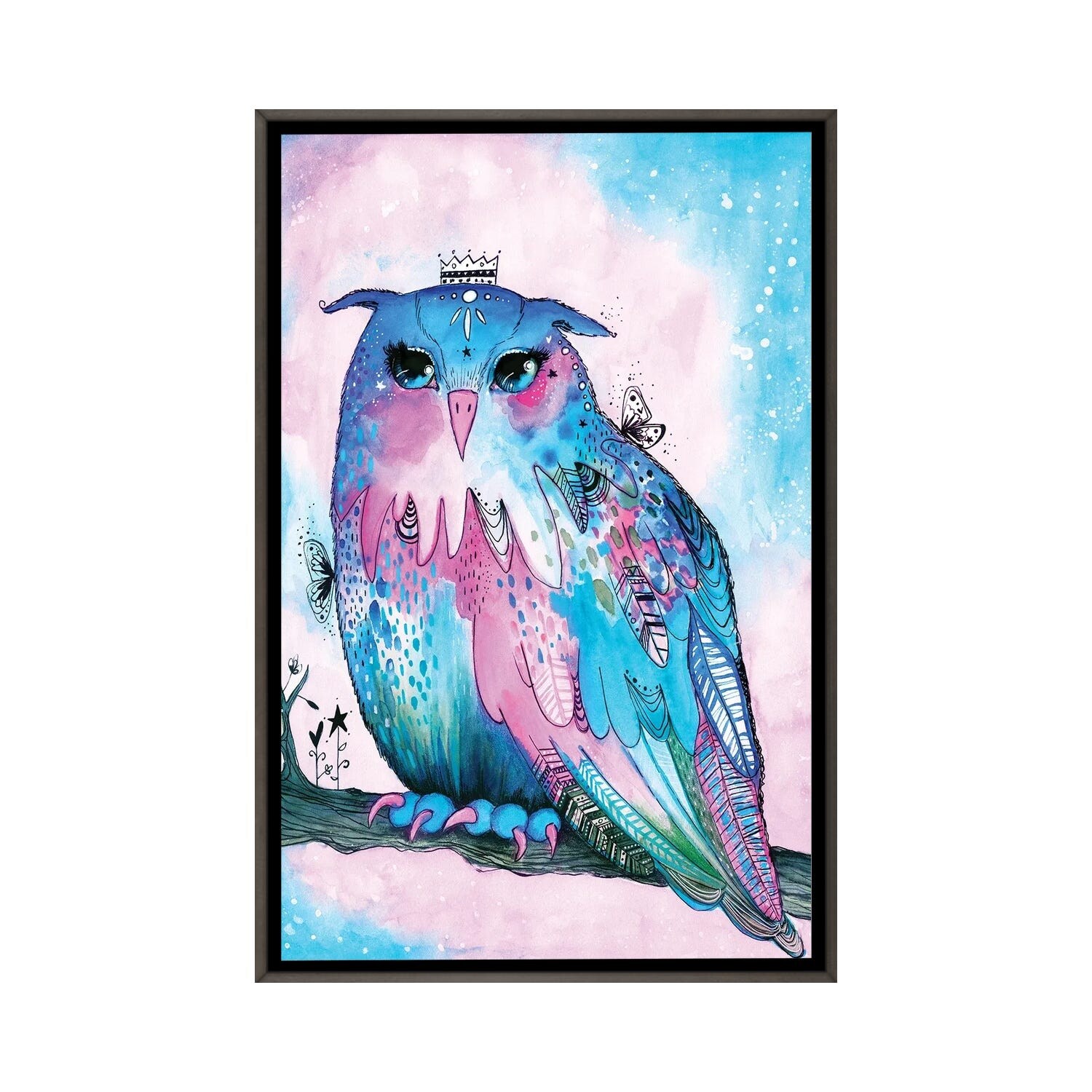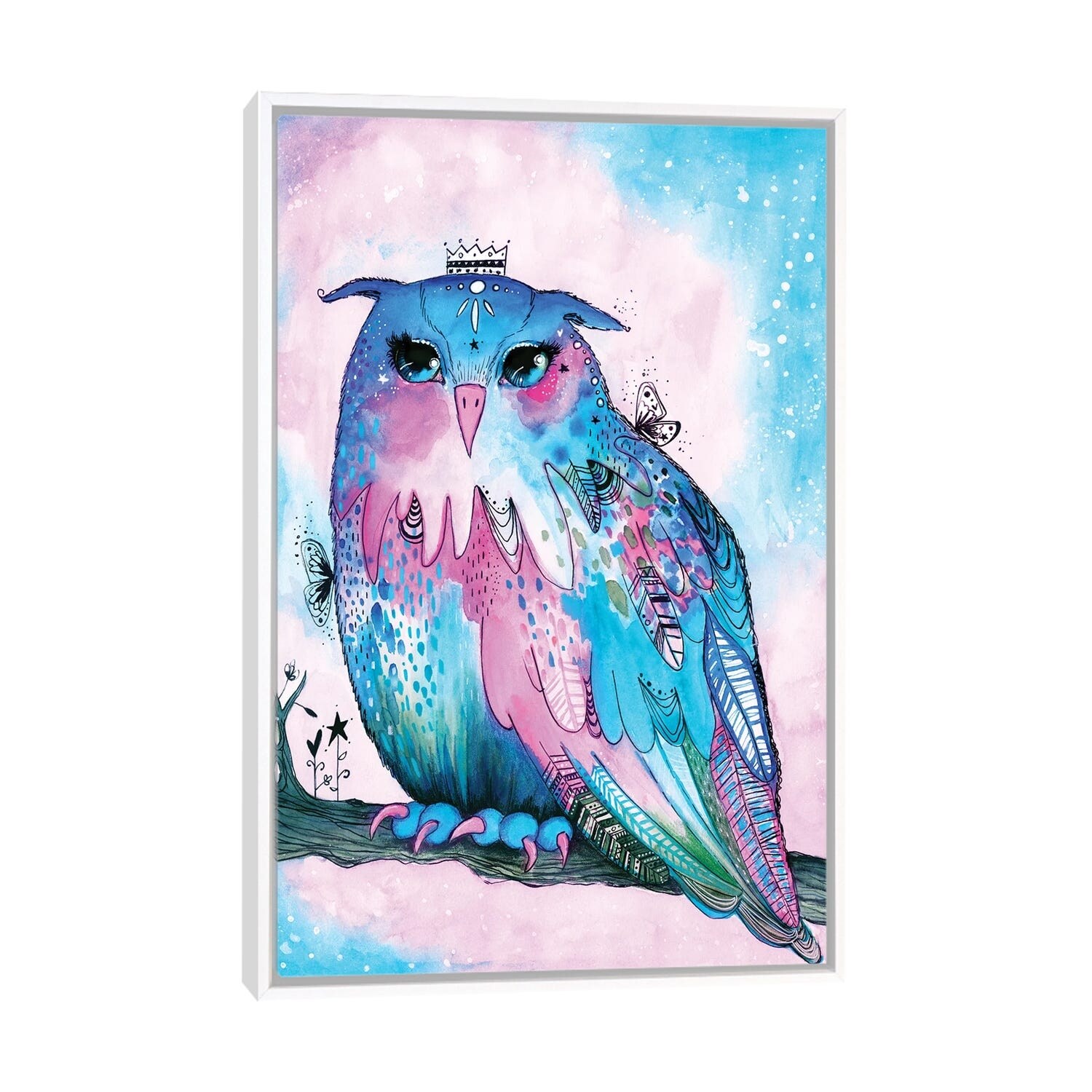 Oliver Gal 'Pastel Owl' Animals Wall Art Framed Canvas Print Birds - Blue, Pink