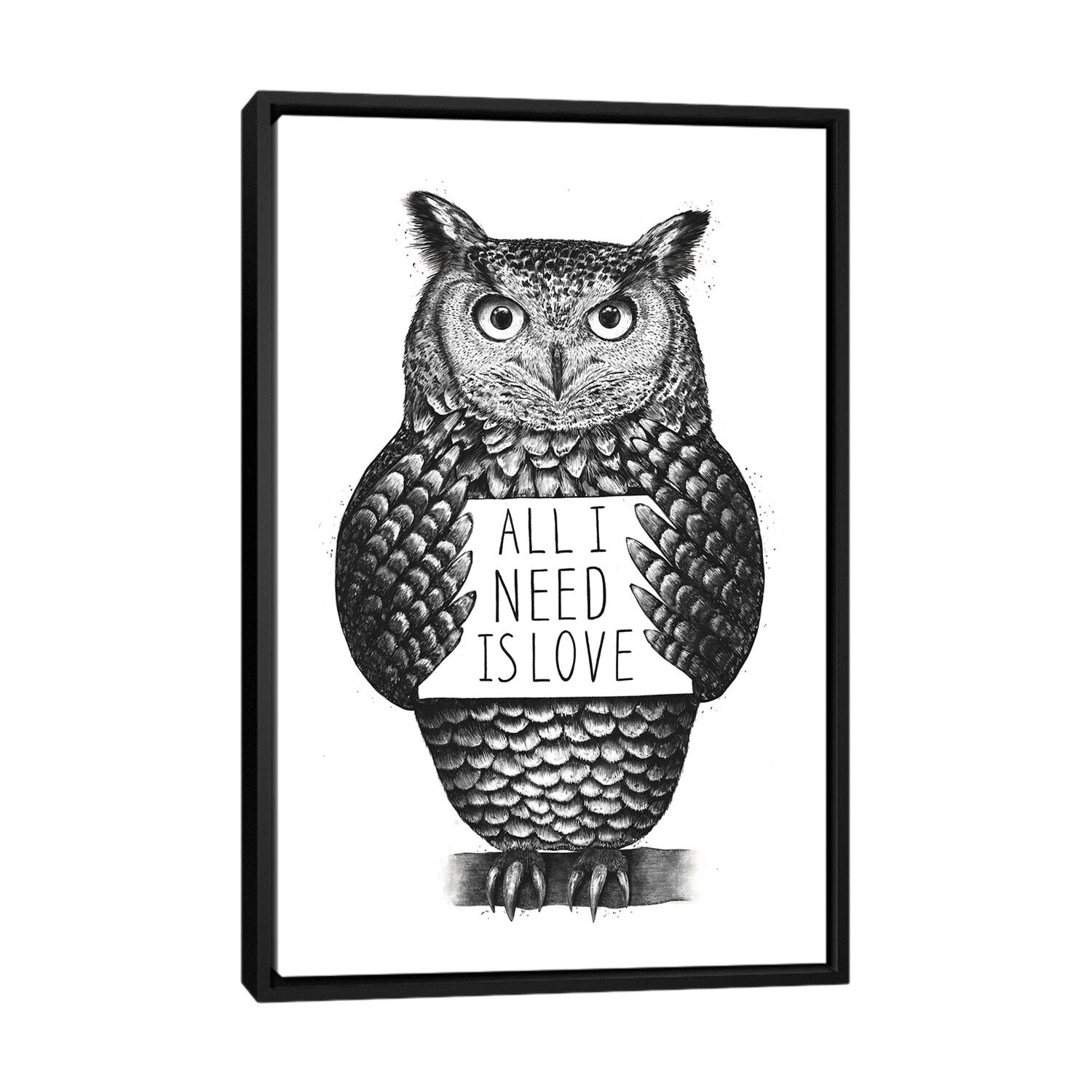 iCanvas "Owl With Love" by Valeriya Korenkova Framed|Black
