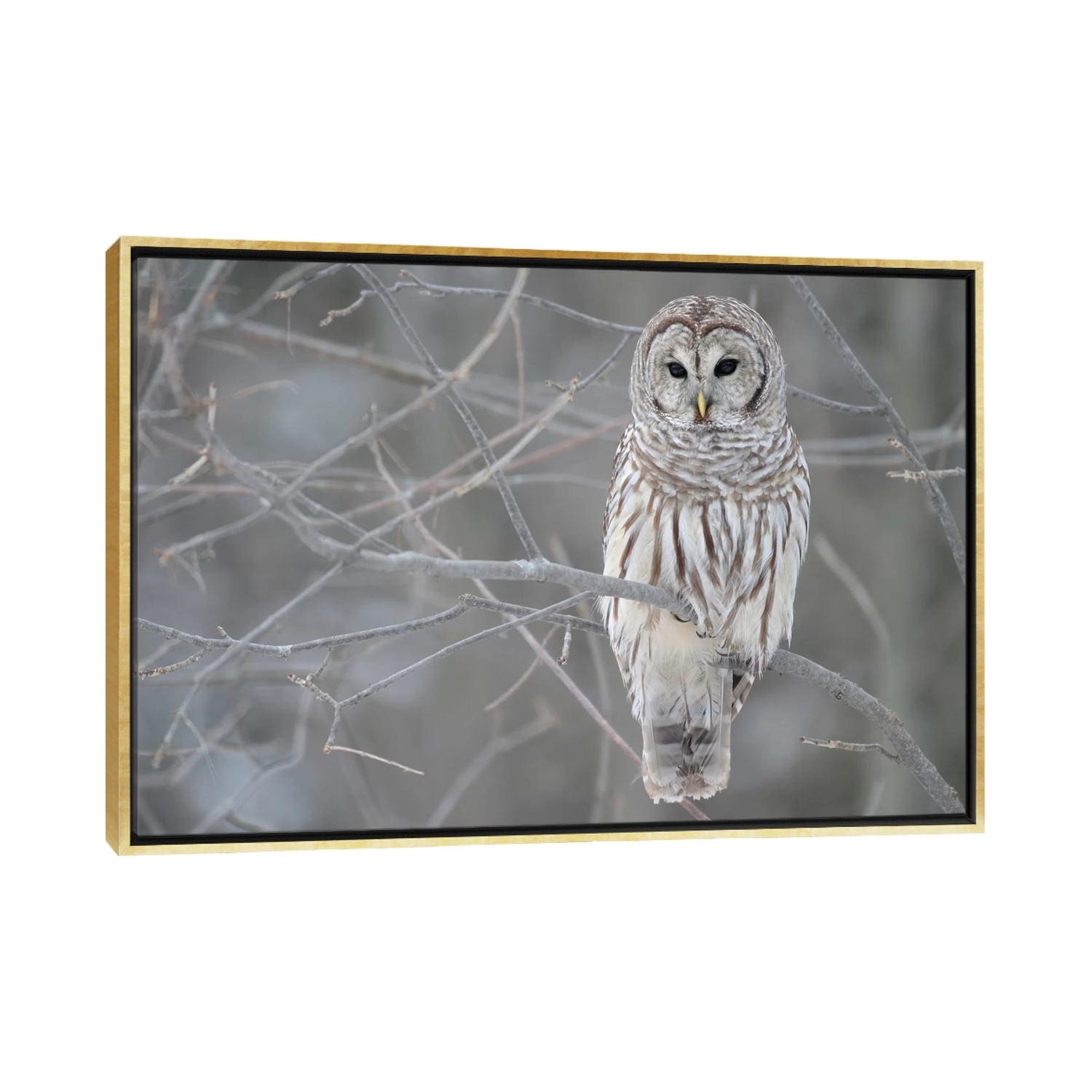 iCanvas "Barred Owl on Branches" by Unknown Artist Framed Canvas Print