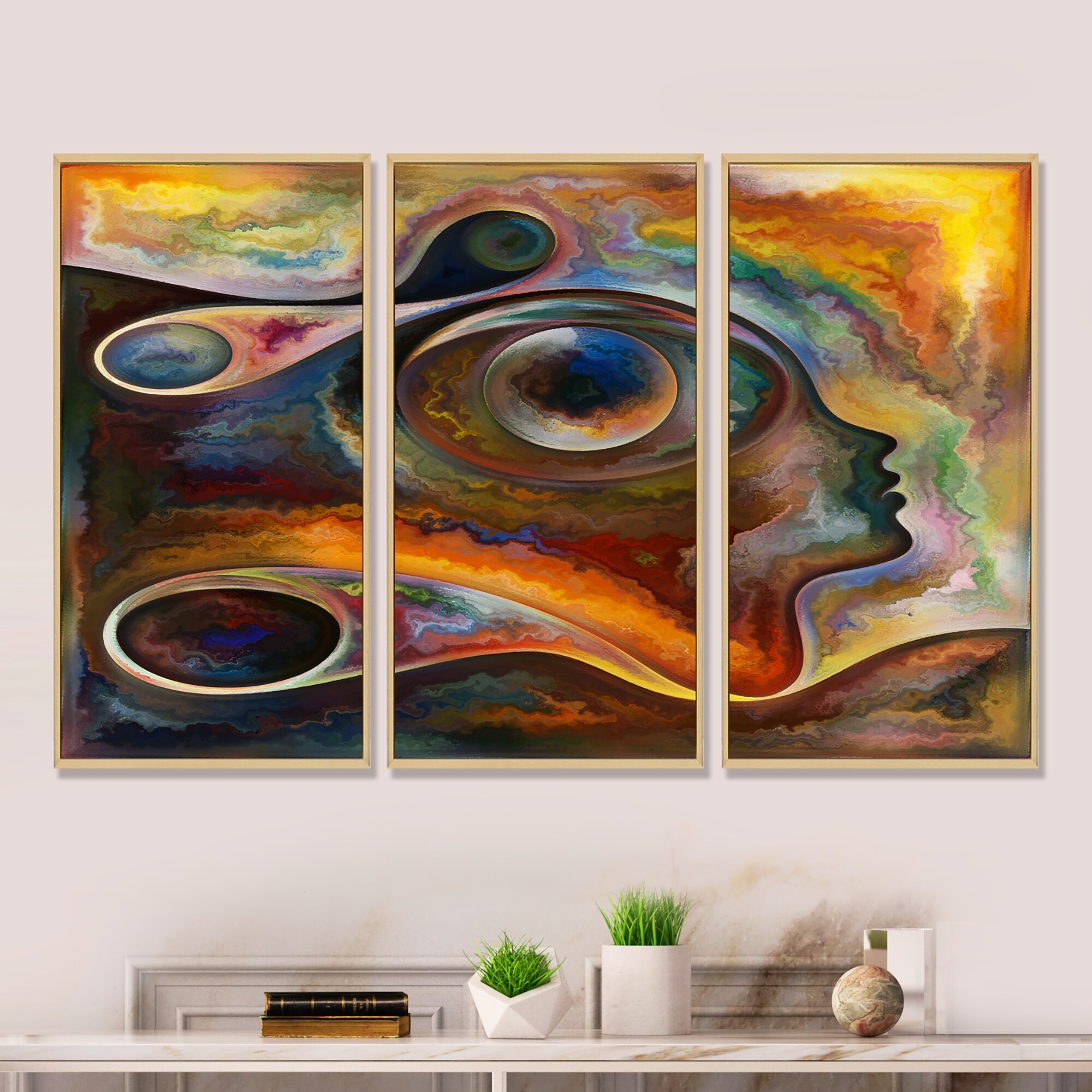 Designart "Inner Reality Landscape Painting" Modern & Contemporary Framed Wall Decor Set of 3 - 4 Colors of Frames