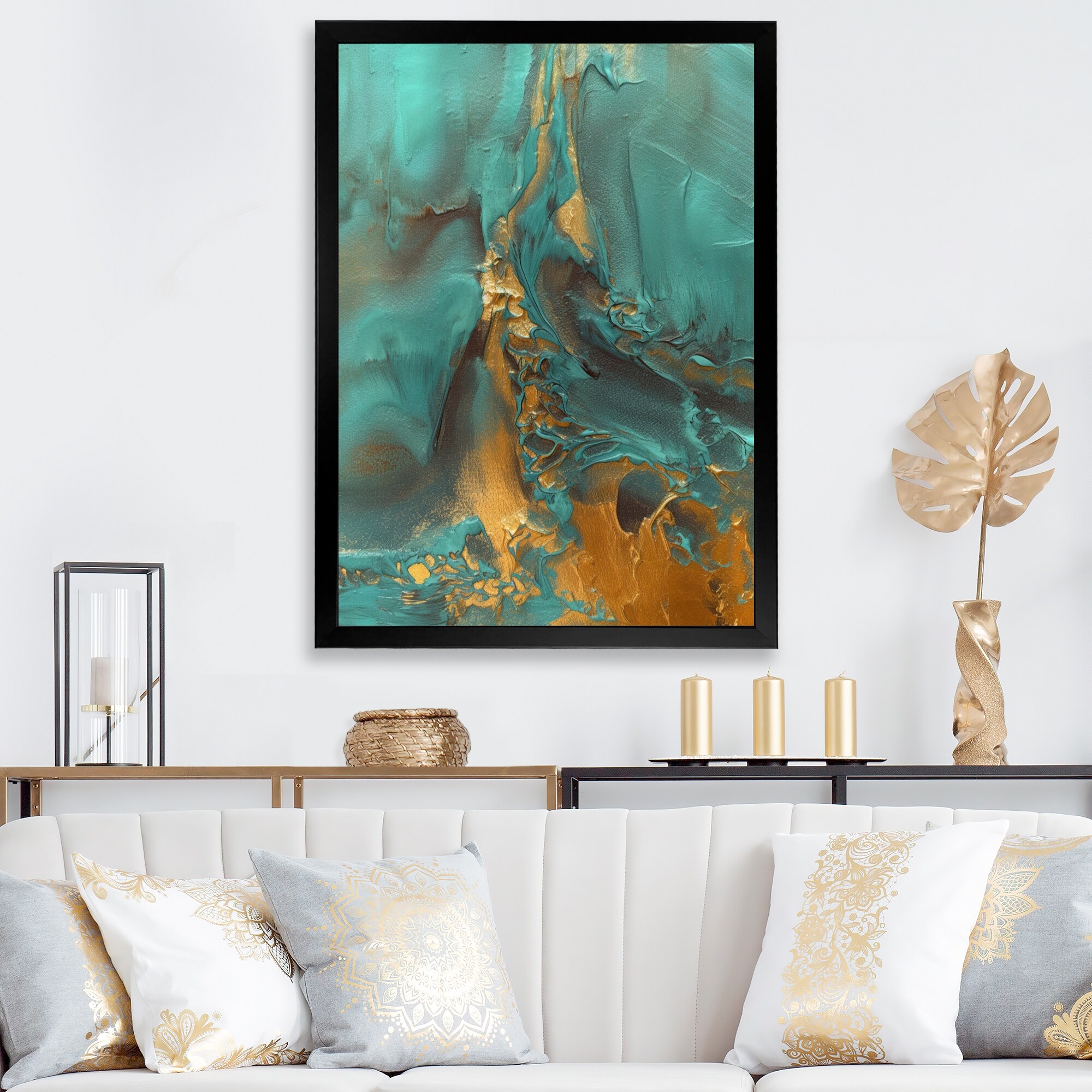 Designart "Whirling Waves II" Abstract Painting Framed Wall Art Prints