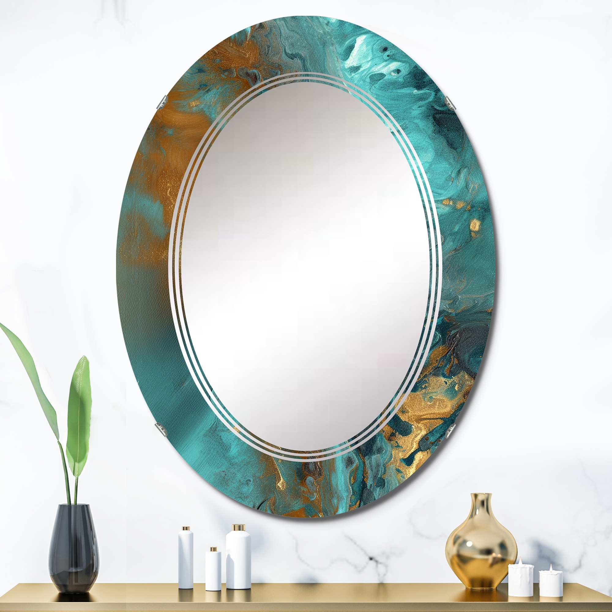 Designart 'Whirling Waves VIII' Printed Abstract Painting Wall Mirror