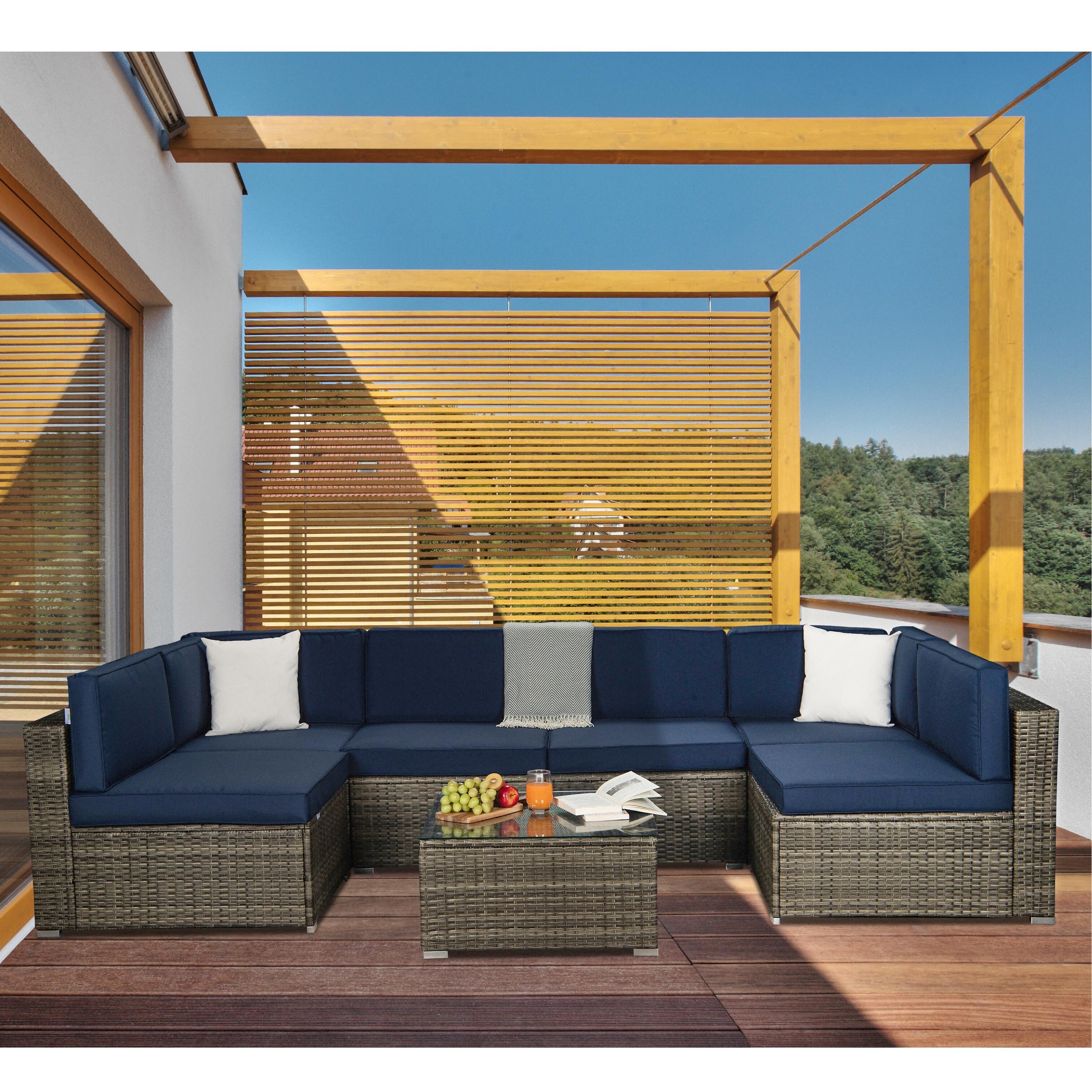 7-Piece Outdoor Patio Furniture Wicker Sectional Set