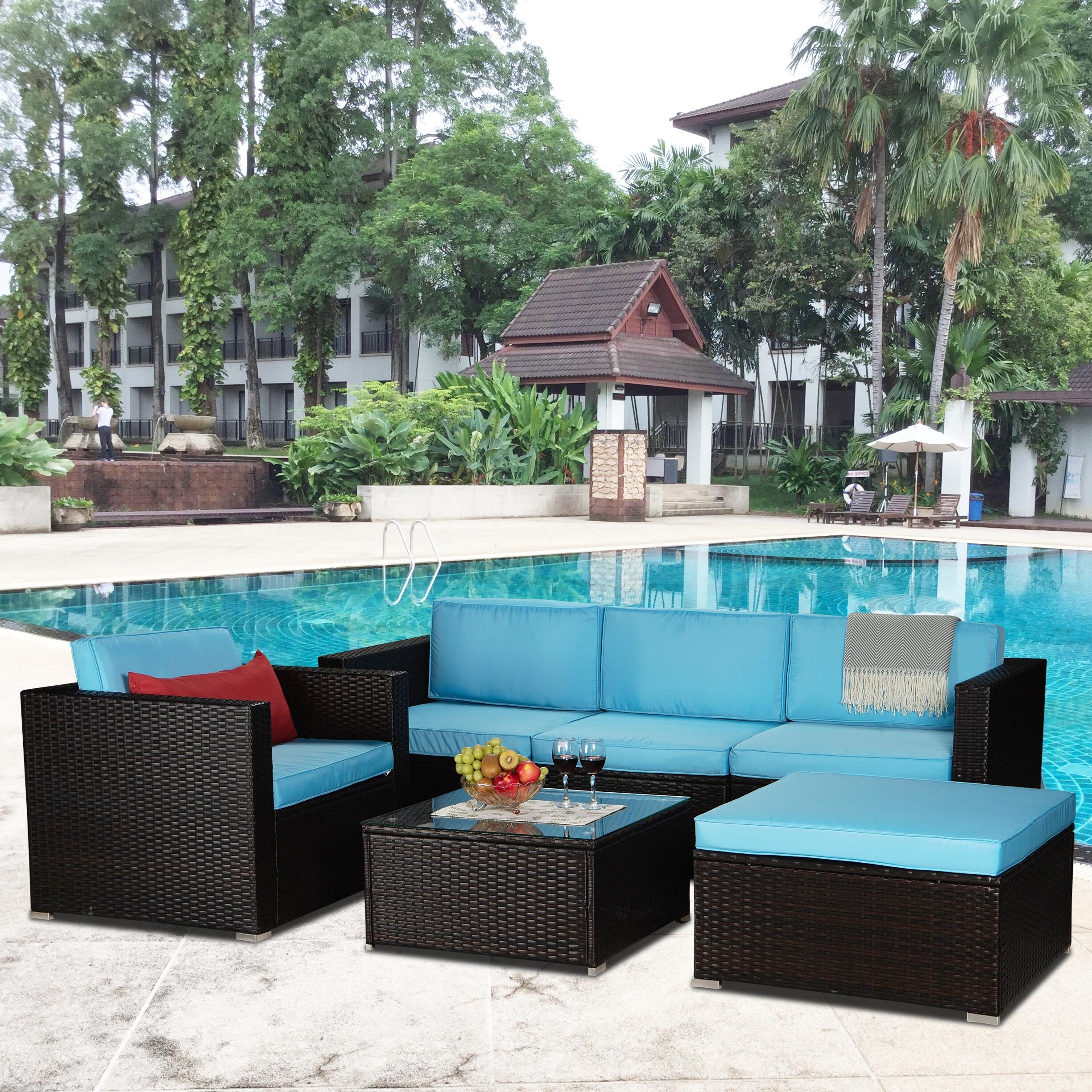 5-Piece Outdoor Patio Furniture Set with Rattan Wicker Sectional Sofa