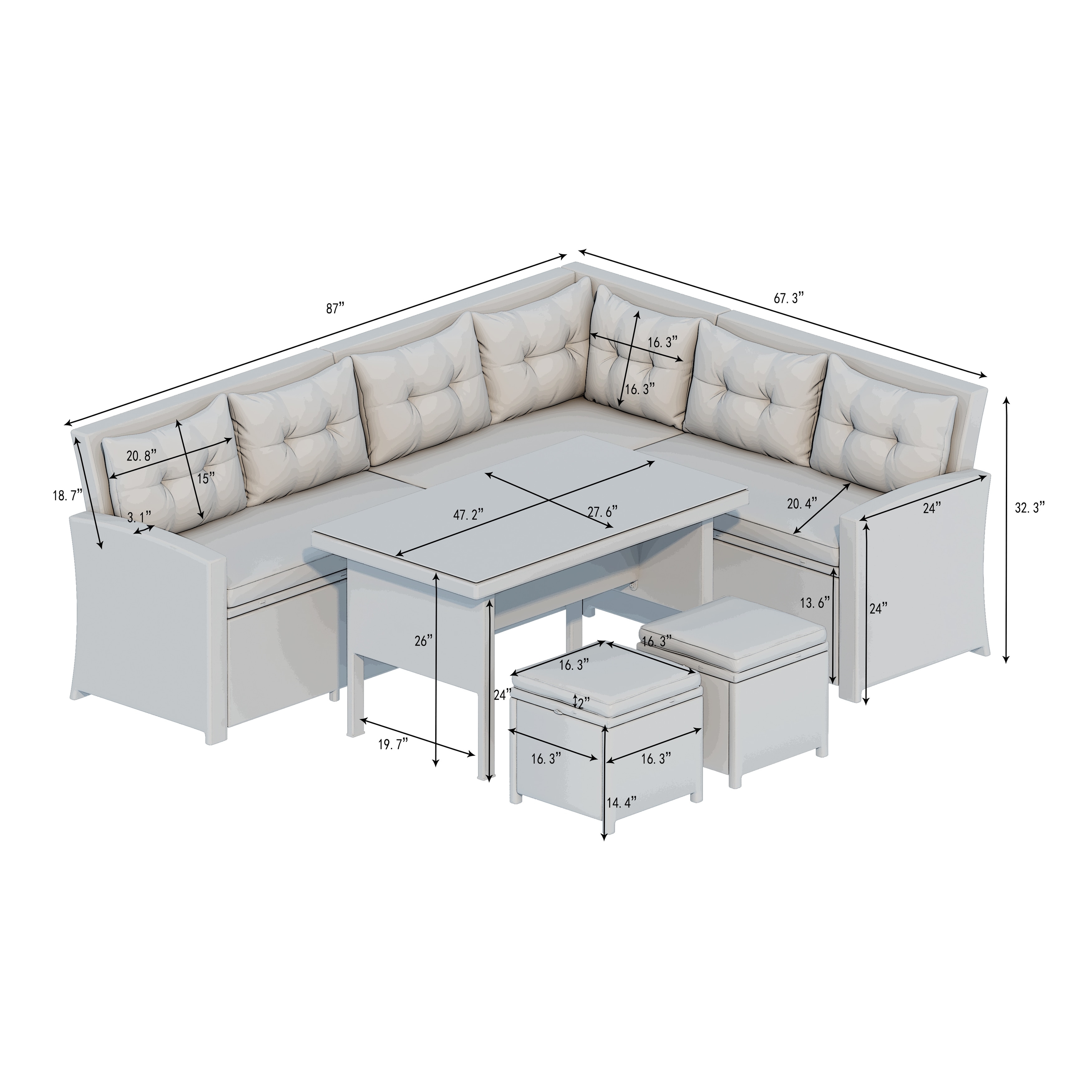6-Piece Patio Furniture Set Outdoor Sectional Sofa Set