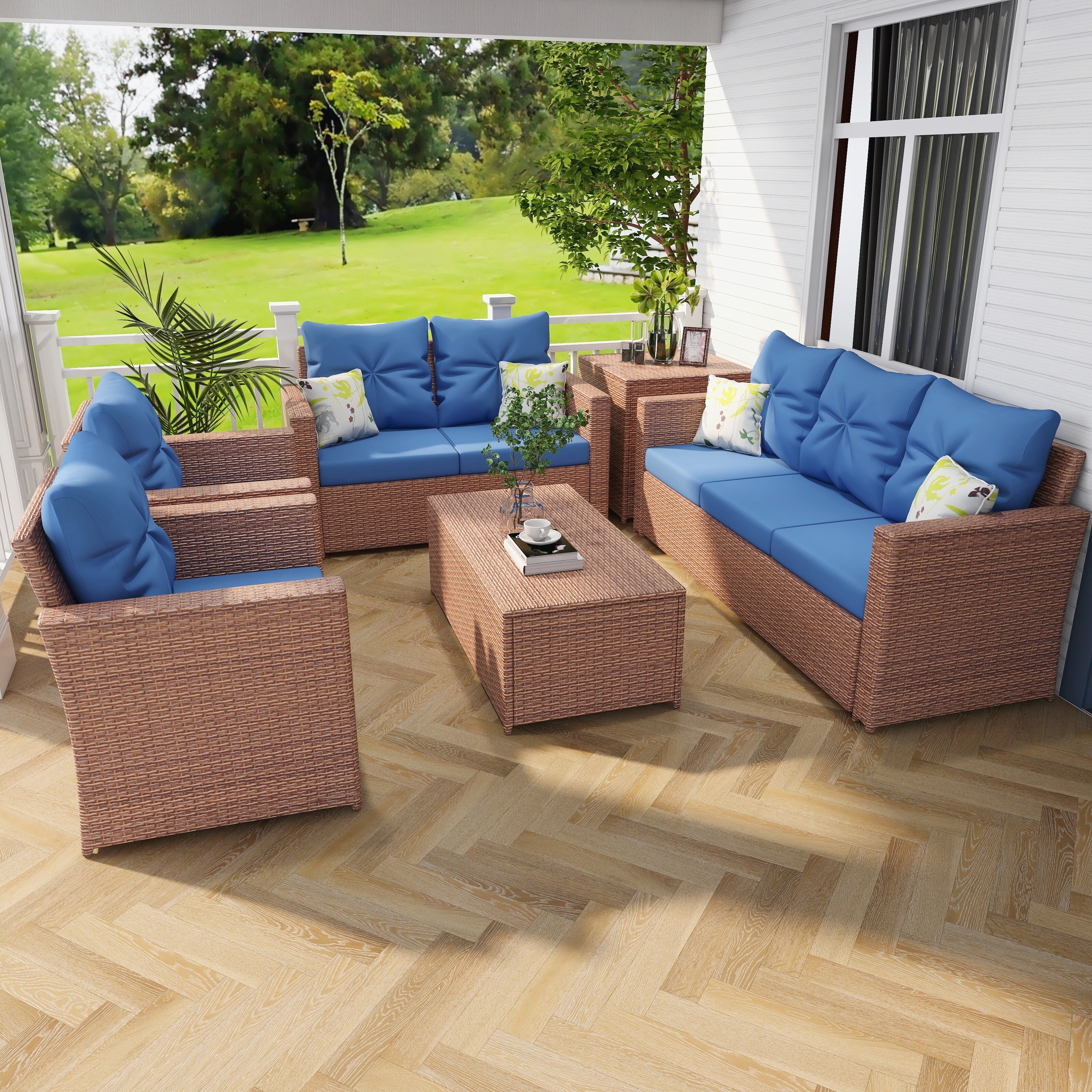 7-Piece Patio Wicker Sofa , Patio Furniture Sets Cushions, Chairs , a Loveseat , a Table and a Storage Box