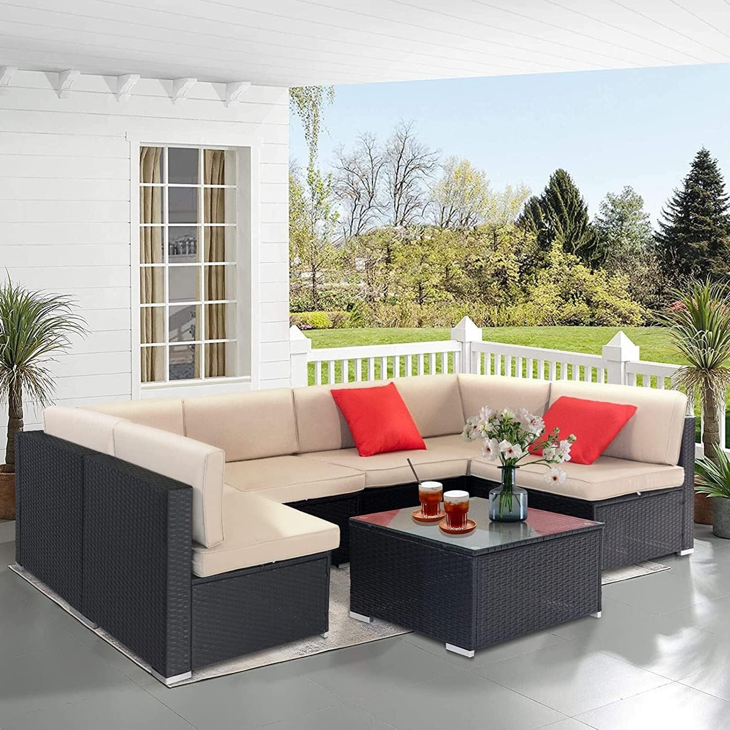 7-Piece Outdoor Patio Furniture Set with Wicker Rattan Sectional Sofa