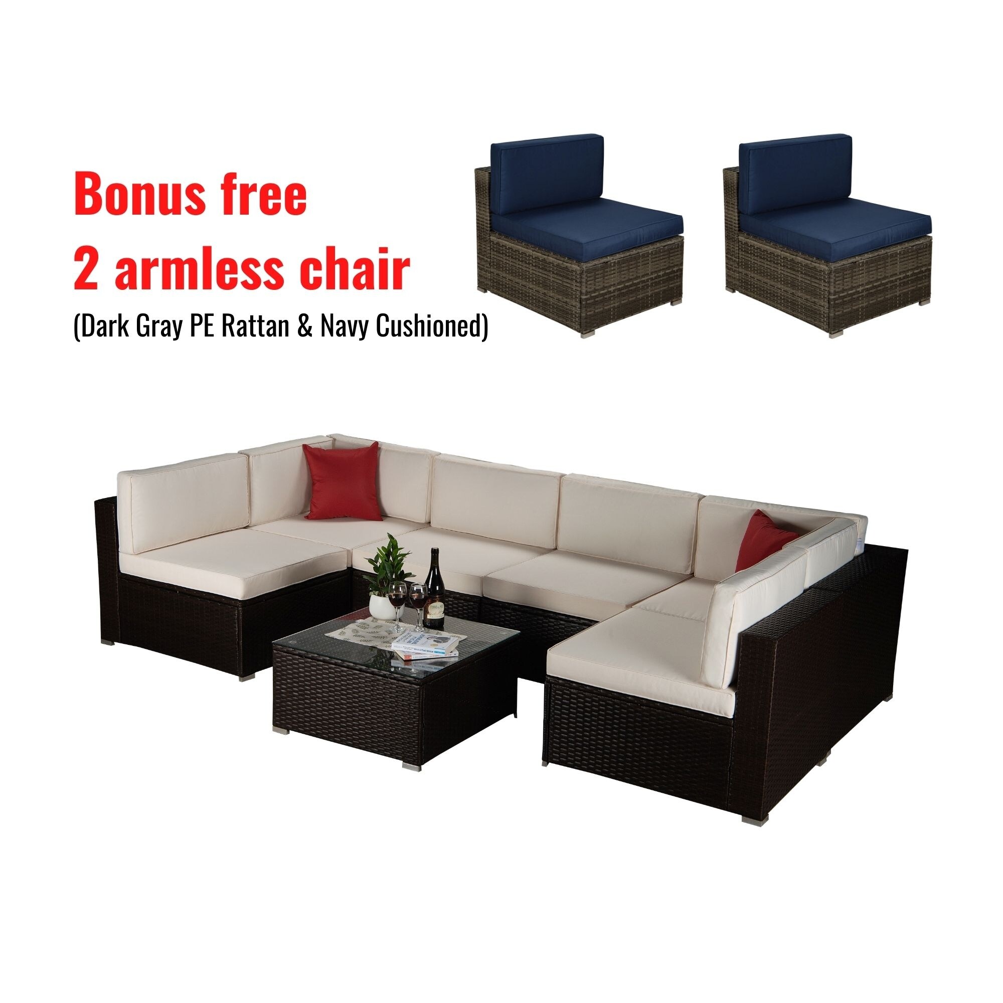 Patio Conversation Sets 5/7/9-Seat , Outdoor Sofa Set with 2 Single Sofa Chairs, 3-Seater Sofa, Ottoman and Coffee Table