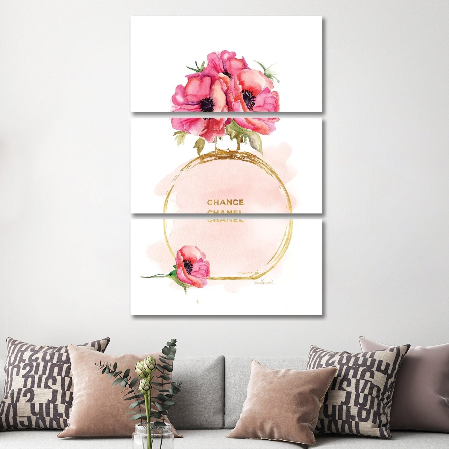 iCanvas "Round Perfume Bottle & Poppies" by Amanda Greenwood 3-Piece Canvas Wall Art Set