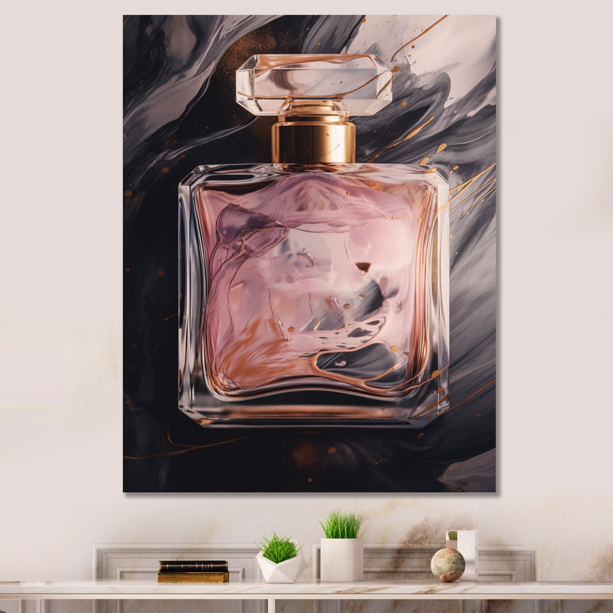 Designart "Pink Perfume Couture" Fashion Perfume Canvas Art Print