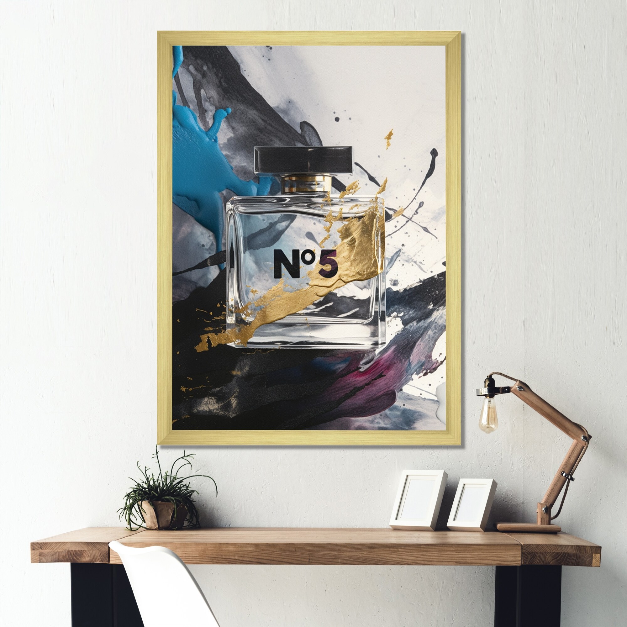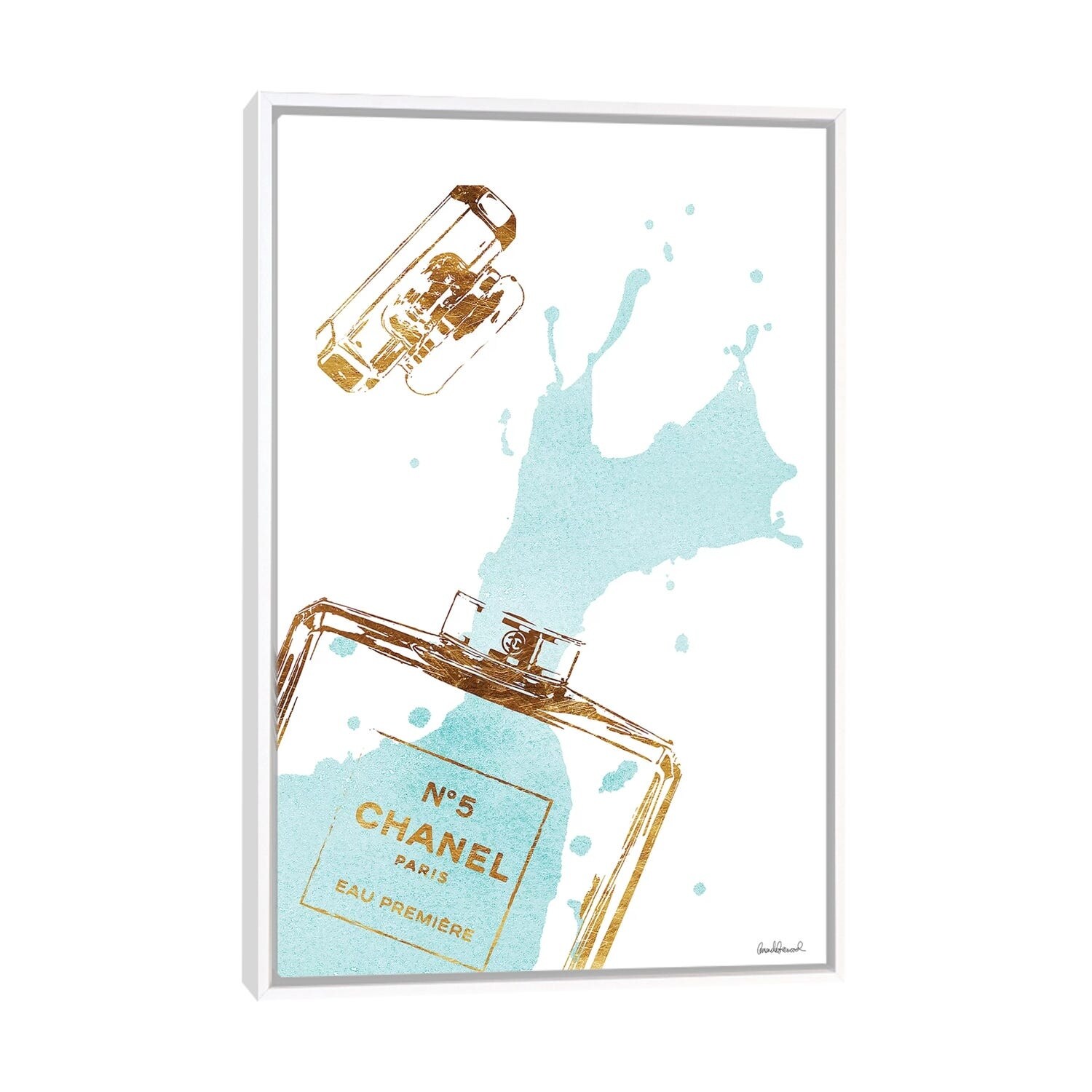 iCanvas "Gold Perfume Bottle With Teal Splash" by Amanda Greenwood Framed Canvas Print