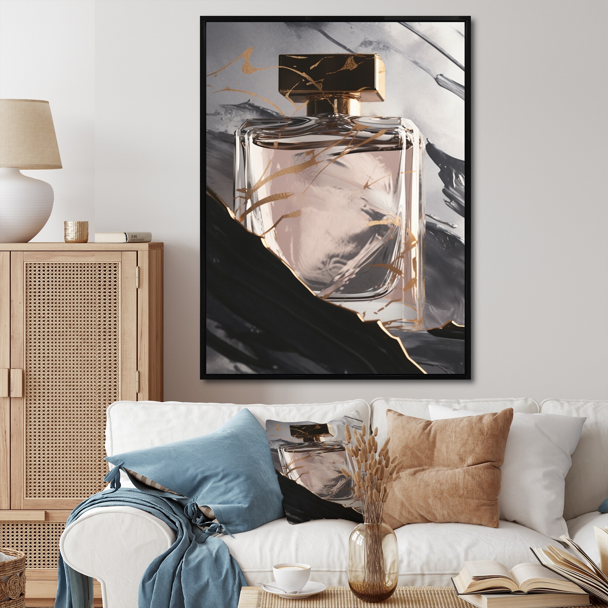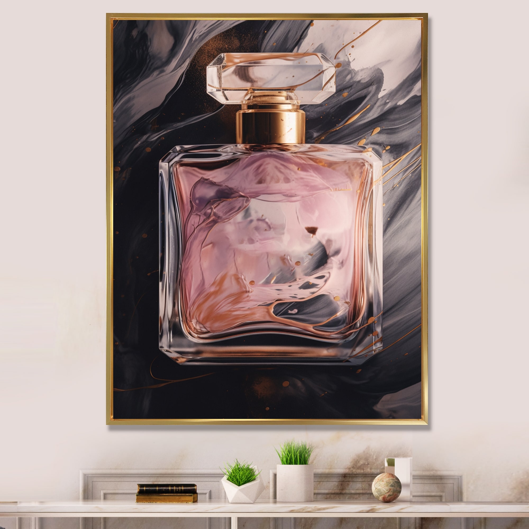Designart "The Essence of Perfume I" Fashion Perfume Framed Canvas Art Print