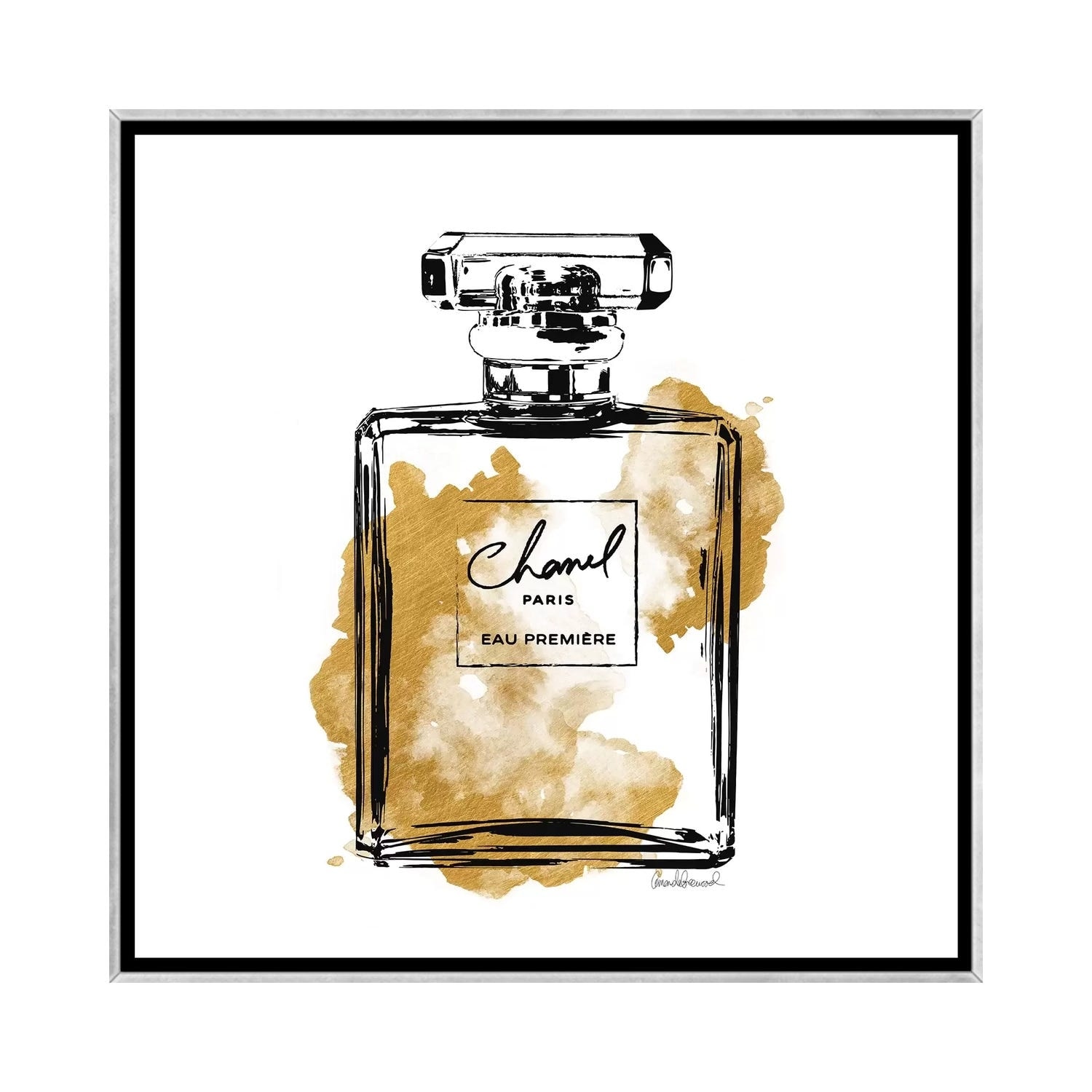 iCanvas "Black And Gold Perfume Bottle" by Amanda Greenwood Framed