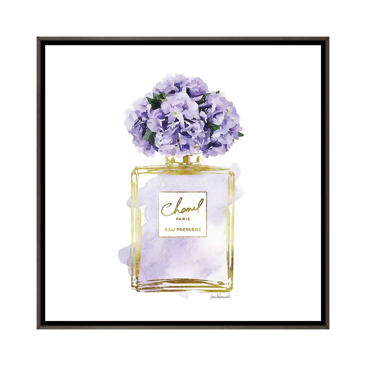 iCanvas "Gold And Purple Perfume Bottle With Purple Peonies" by Amanda Greenwood Framed
