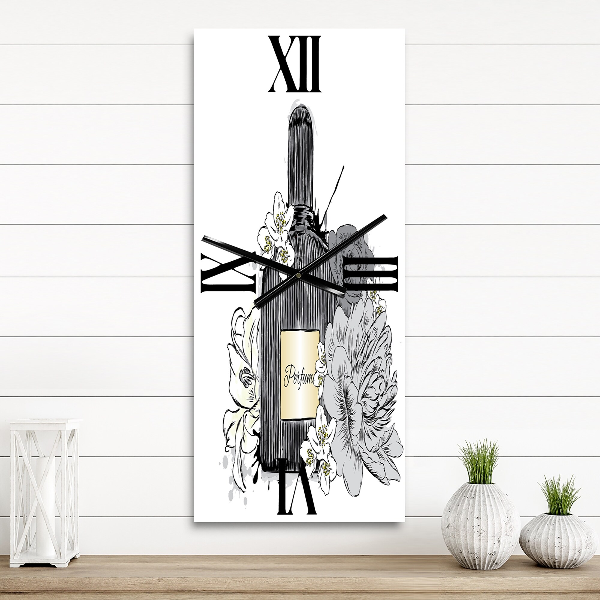 Designart 'Perfume Bottle and Bouquet of Flowers III' Traditional Metal Wall Clock