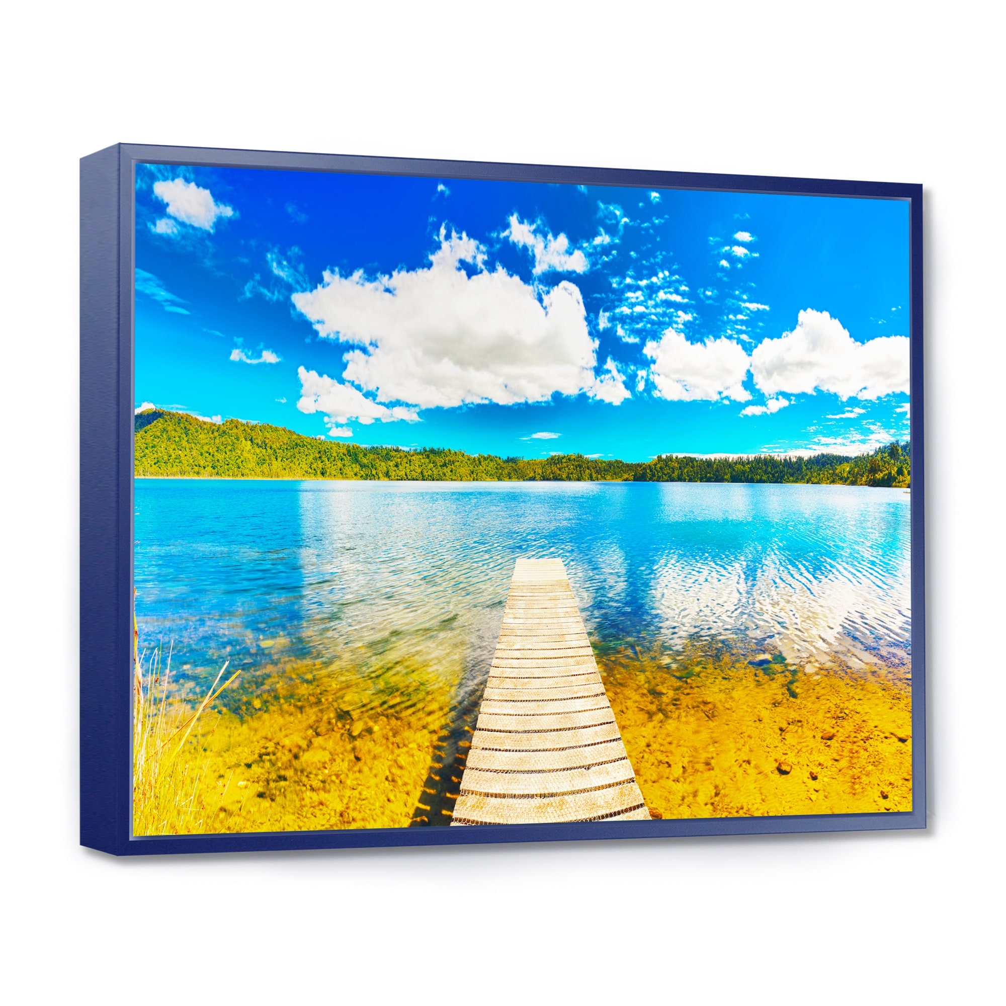 Designart "Lake with Pier Panorama" Photography Framed Canvas Art Print