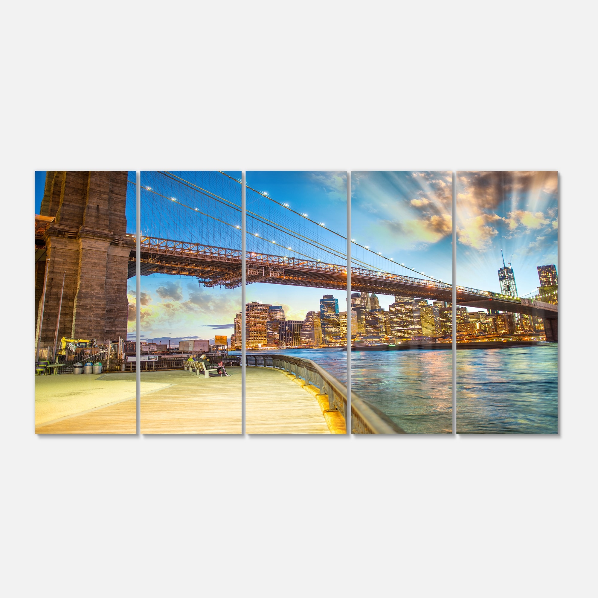 Designart 'Bridge Park Brooklyn' Cityscape Photography Metal Wall Art