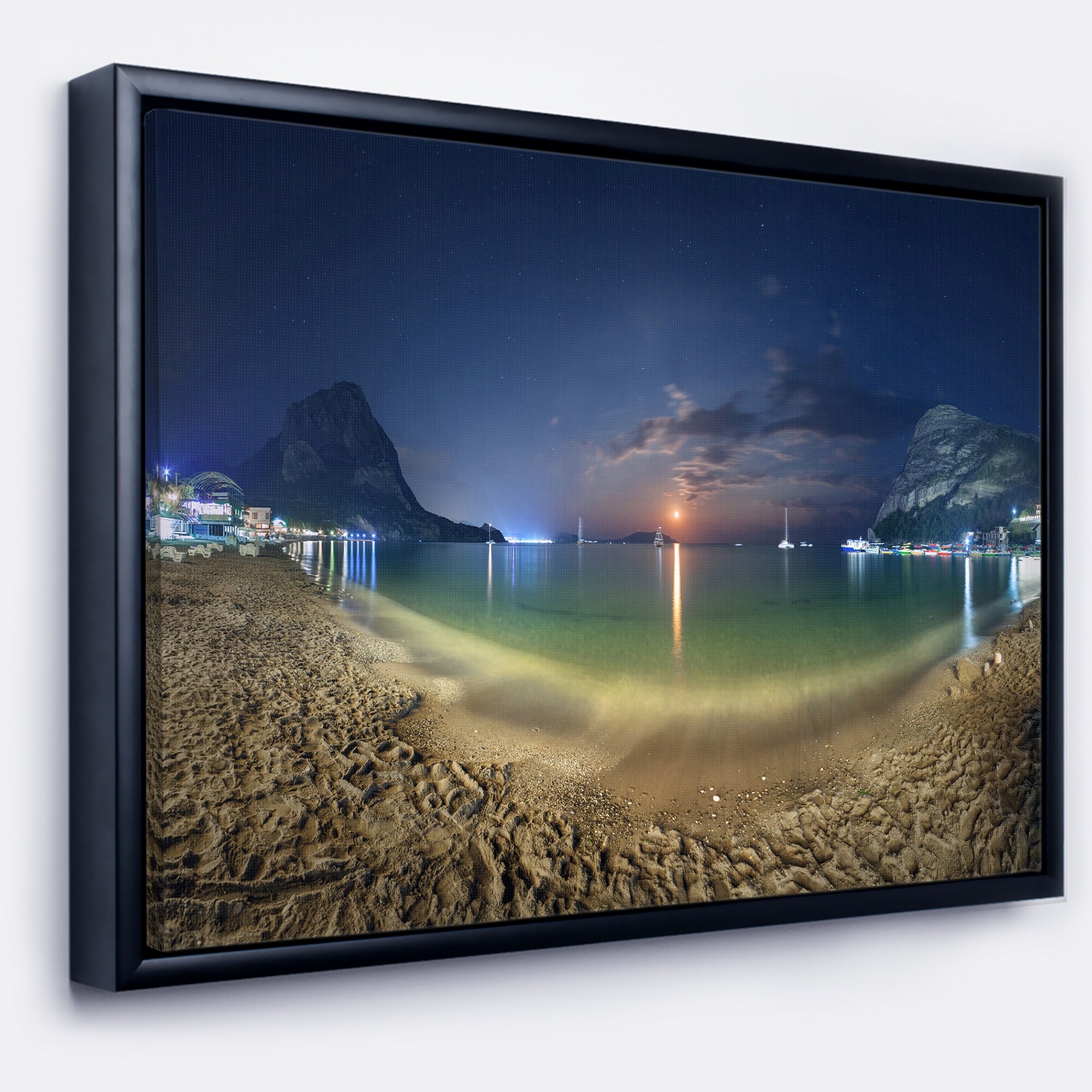 Designart "Beach with Lunar Path" Seashore Photography Framed Canvas Art Print