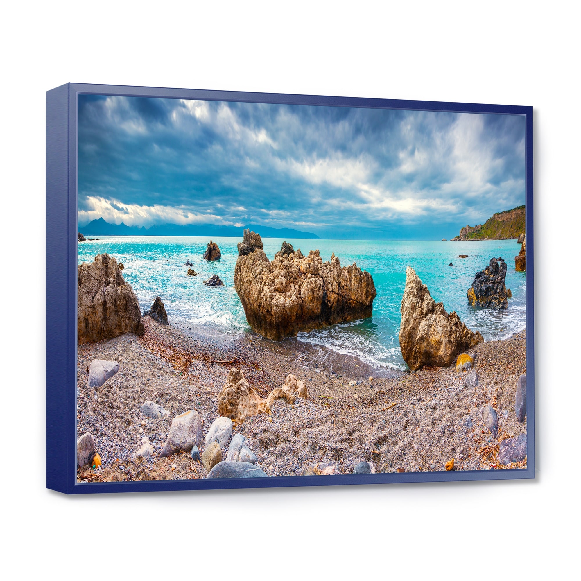 Designart "Blue Volcanic Beach" Seashore Photography Framed Canvas Print