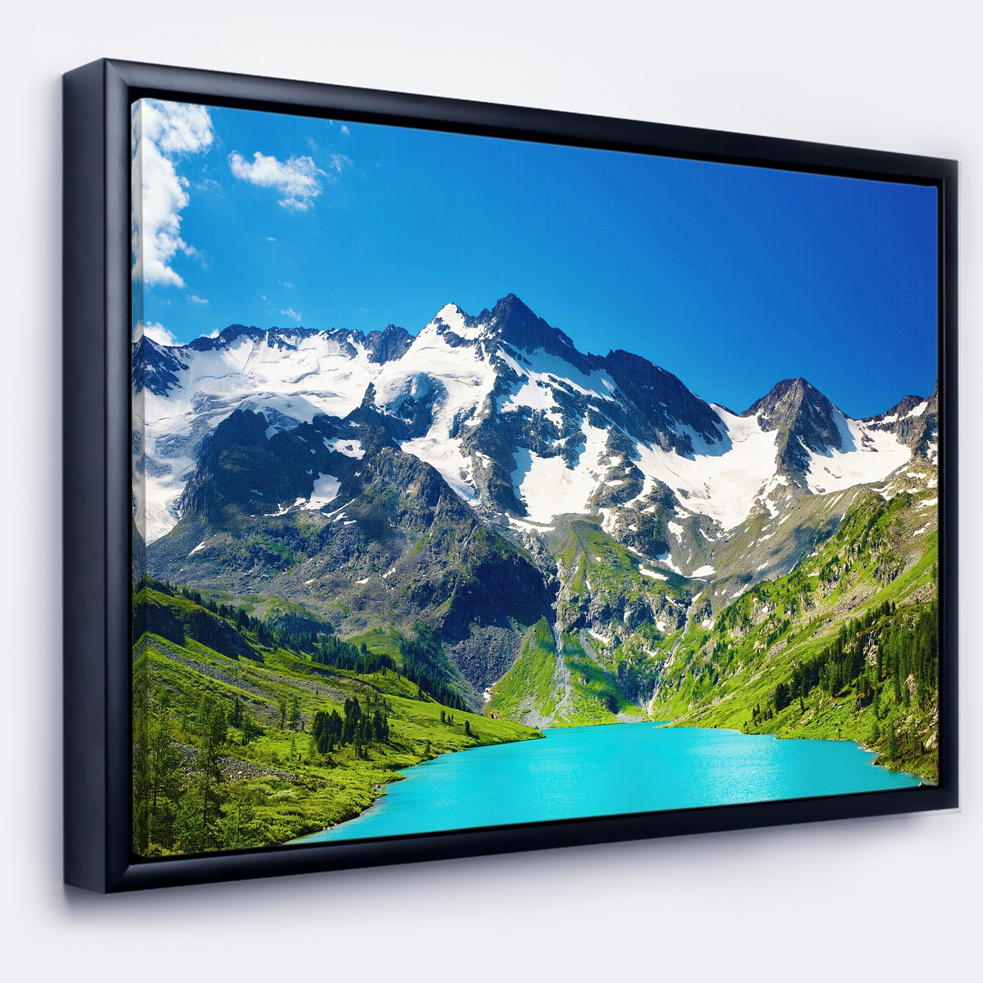 Designart "Green Mountain Lake" Photography Framed Canvas Art Print